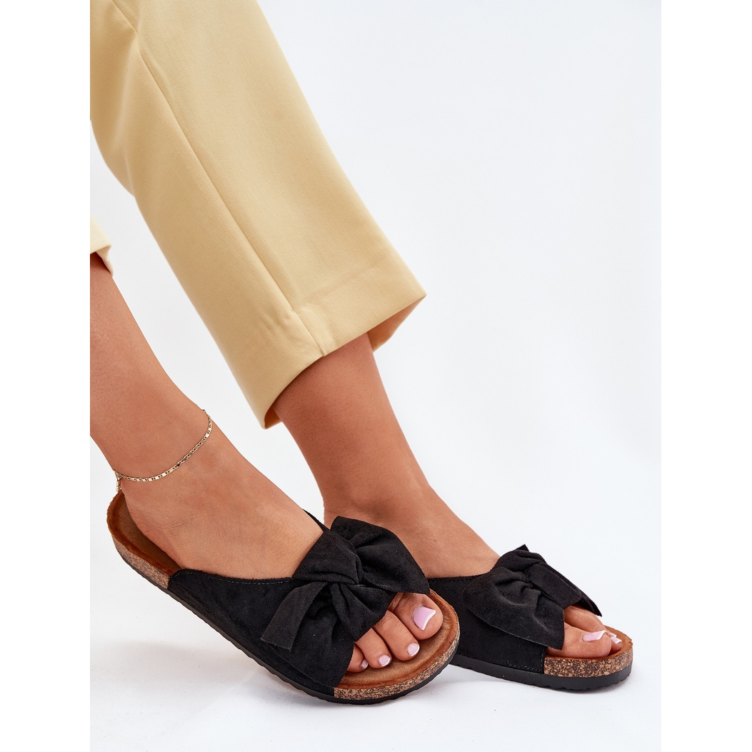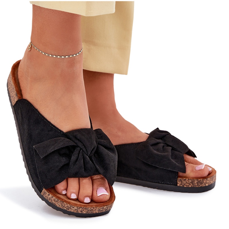 Détails: Slippers pour femmes sur une semelle de liège avec un arc noir le noir
