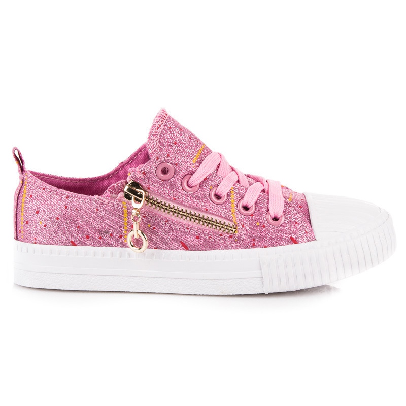 Baskets de sport brillantes conçues pour la petite fille élégante qui aime se démarquer. La combinaison d'un design féminin et de solutions fonctionnelles rend ces chaussures parfaites pour un usage quotidien - pour les jeux, la maternelle ou les promenades en famille.