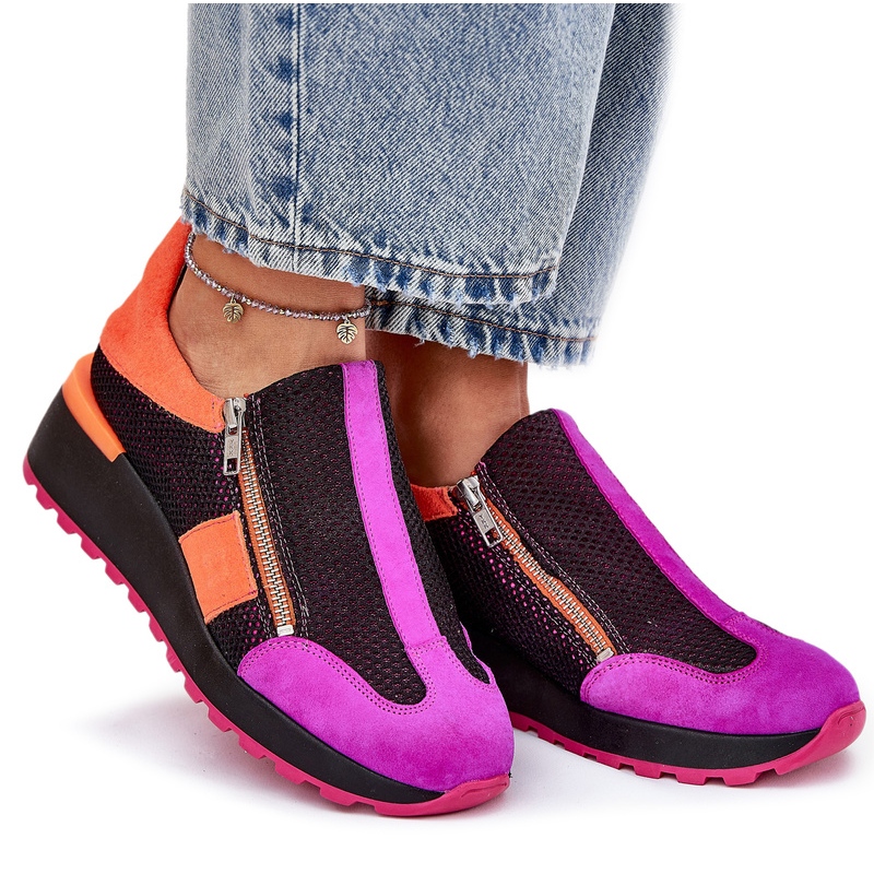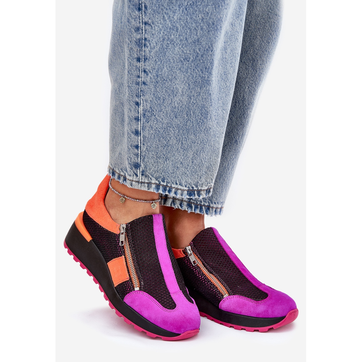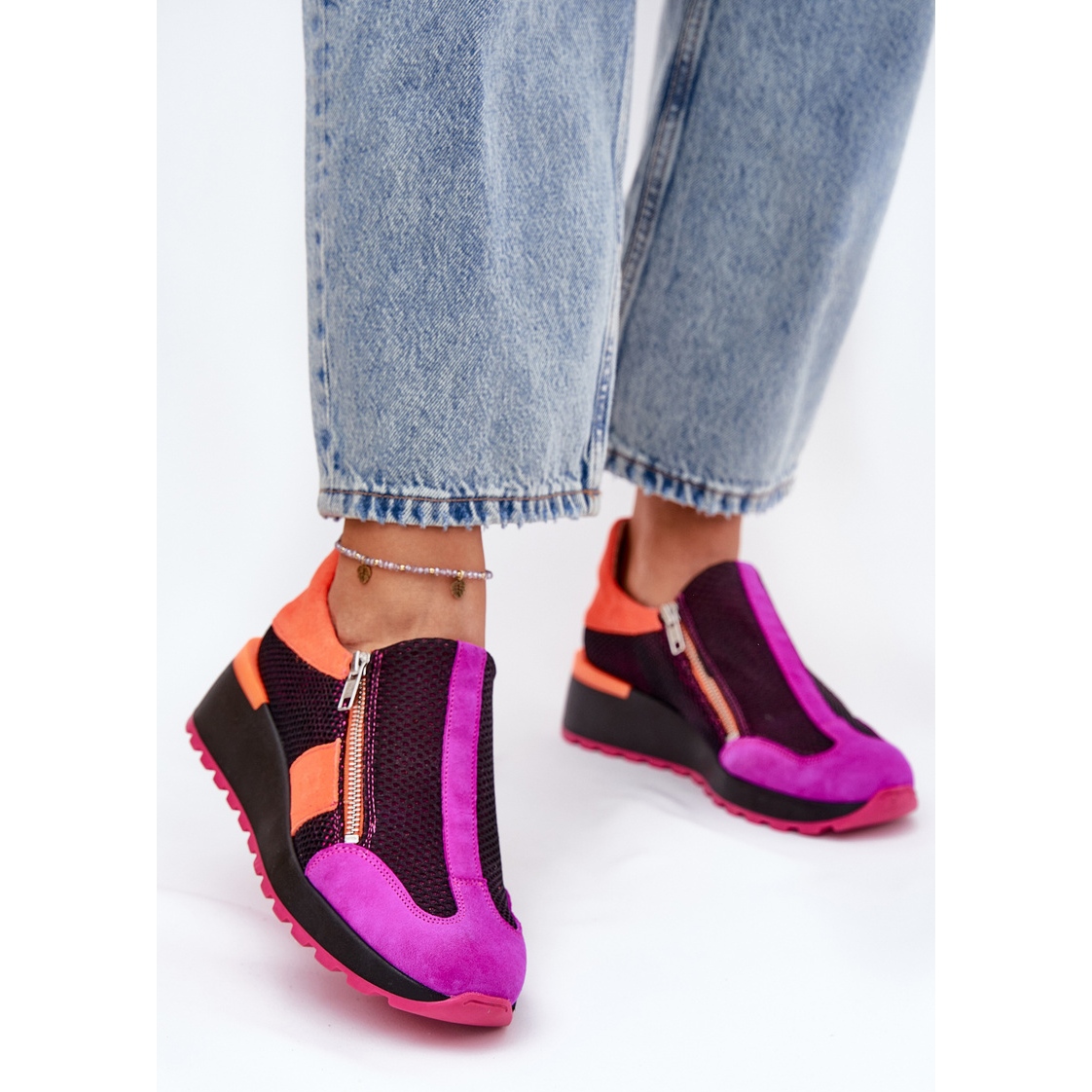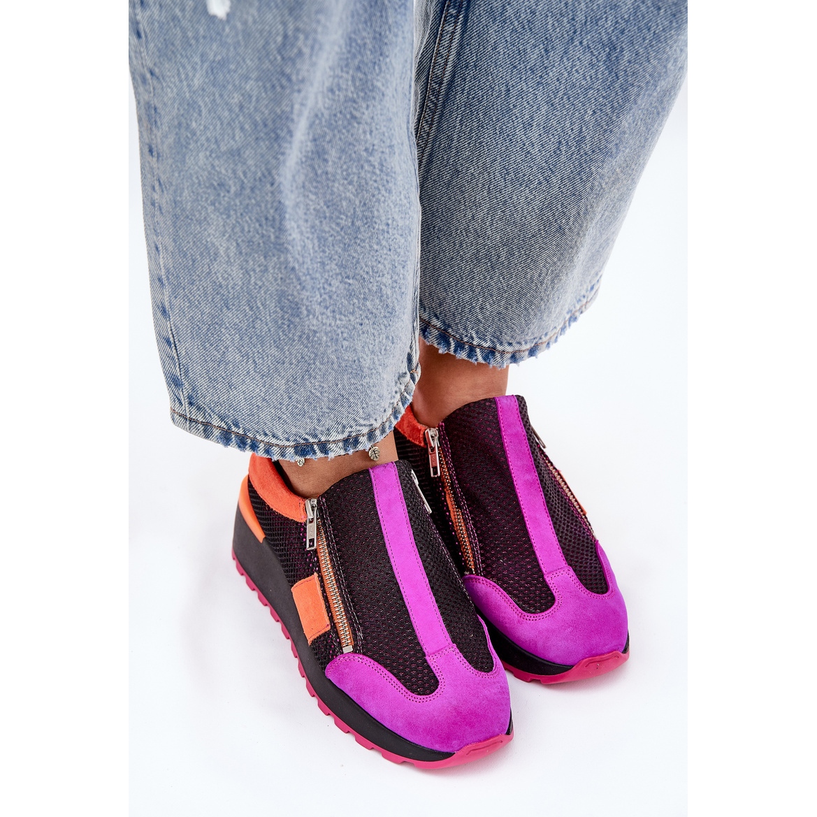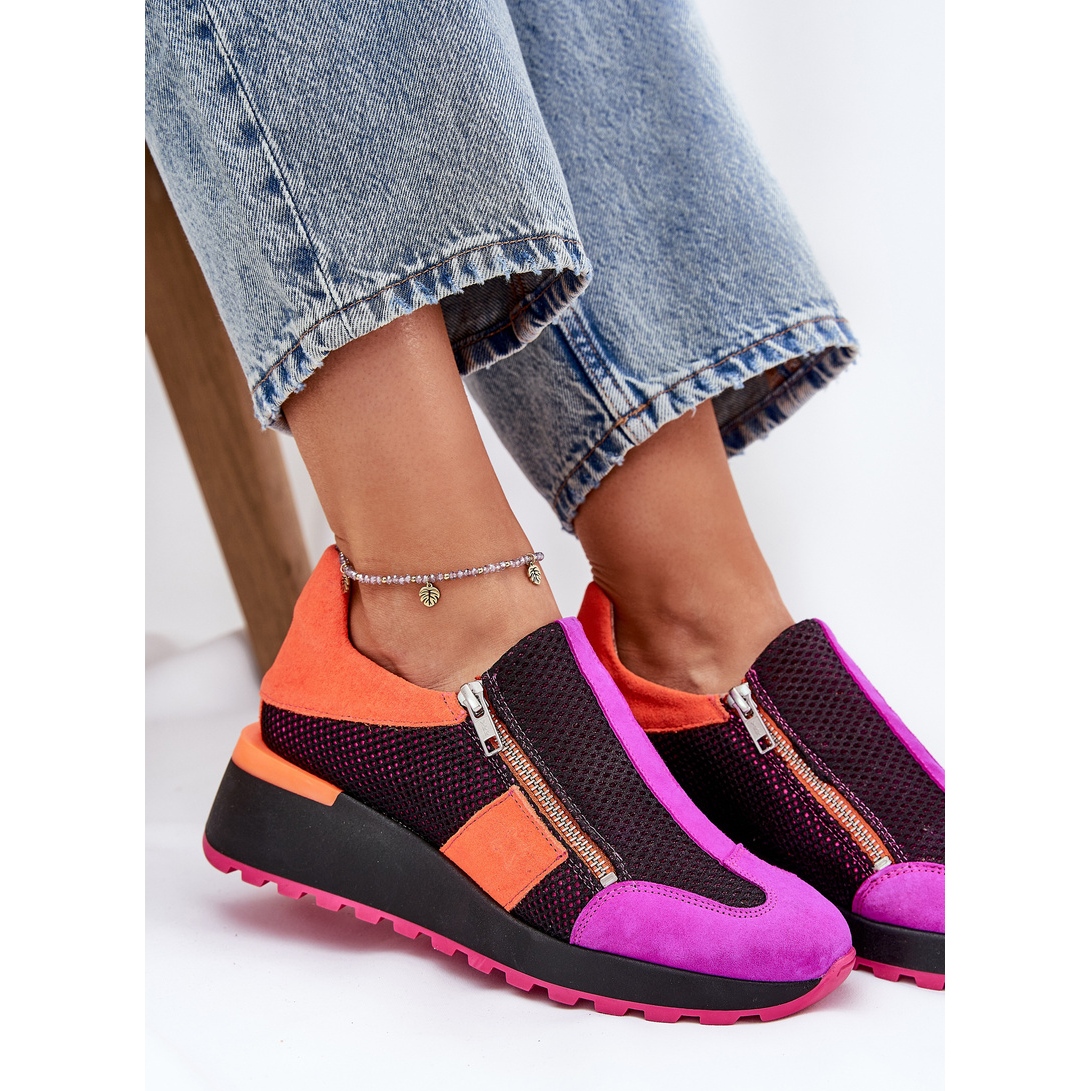 Découvrez à quel point il est facile de mettre des chaussures grâce à un double château, ce qui offre non seulement un confort, mais aussi un ajustement parfait à votre pied. Un coin délicat de 5,5 cm de haut ajoute la légèreté à votre silhouette, tout en garantissant le confort pendant les longues journées. Les baskets Maciejka sont un complément parfait à chaque femme qui veut combiner la mode et la fonctionnalité.