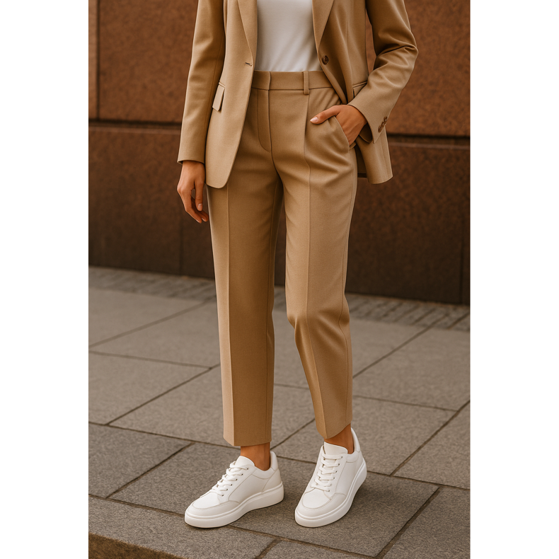 La tendance de la connexion d'un costume avec des baskets conquiert le monde de la mode commerciale. C'est une solution idéale pour les femmes qui veulent être professionnelles, tout en se sentant à l'aise tout au long de la journée. Choisissez des modèles minimalistes dans les couleurs neutres - blanc, noir ou beige. Les baskets en cuir ajouteront une élégance tandis que le daim introduira la douceur. N'oubliez pas les proportions - choisissez des chaussures plus massives pour un pantalon plus large, des modèles plus minces pour plus étroites. Ce look fonctionne très bien lors des réunions d'affaires, où la créativité compte.