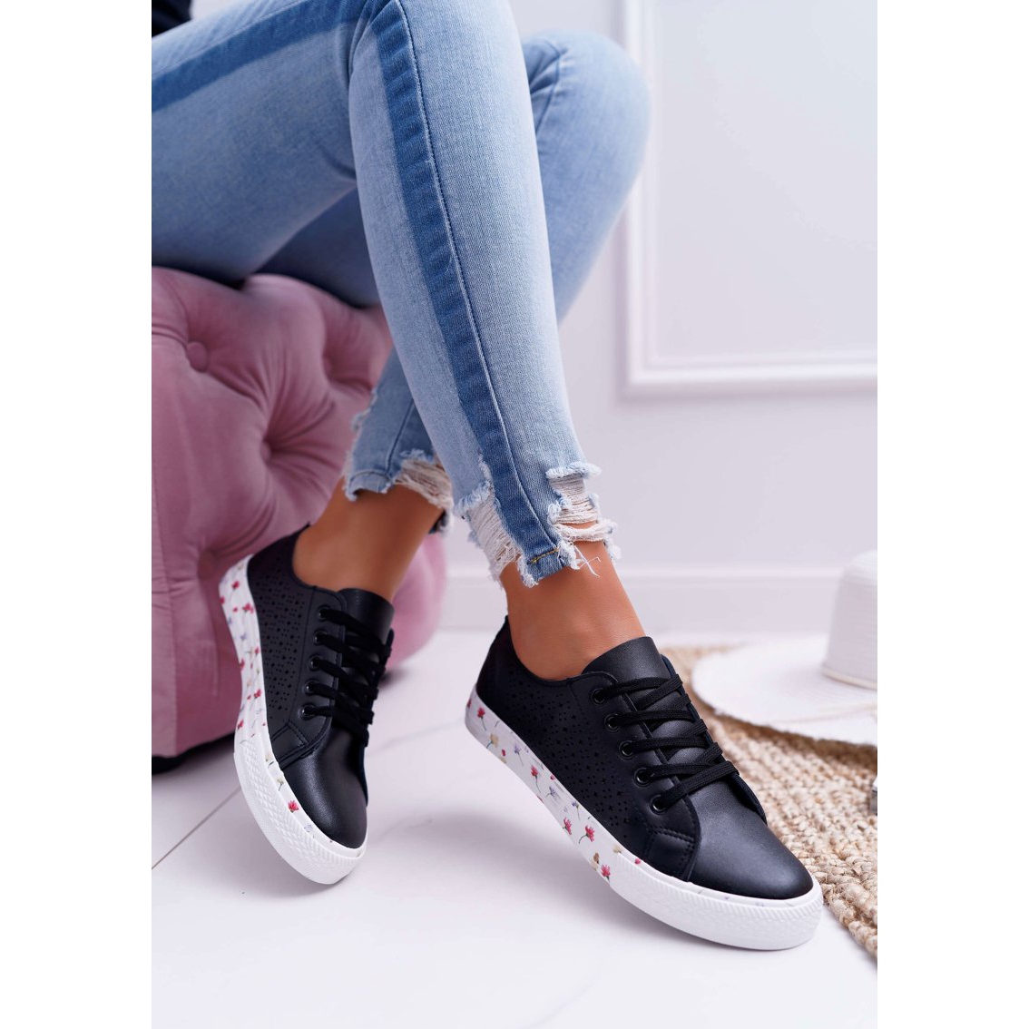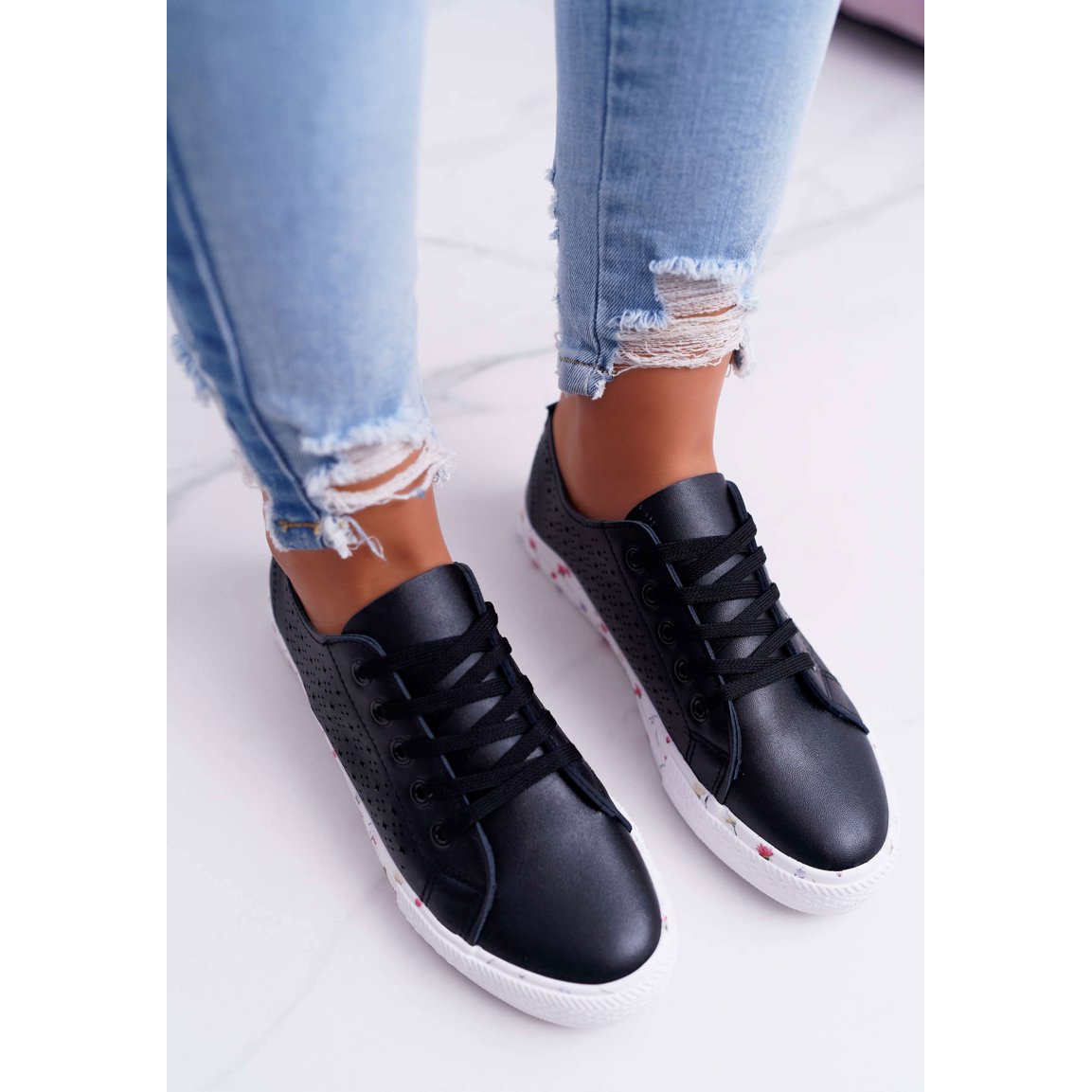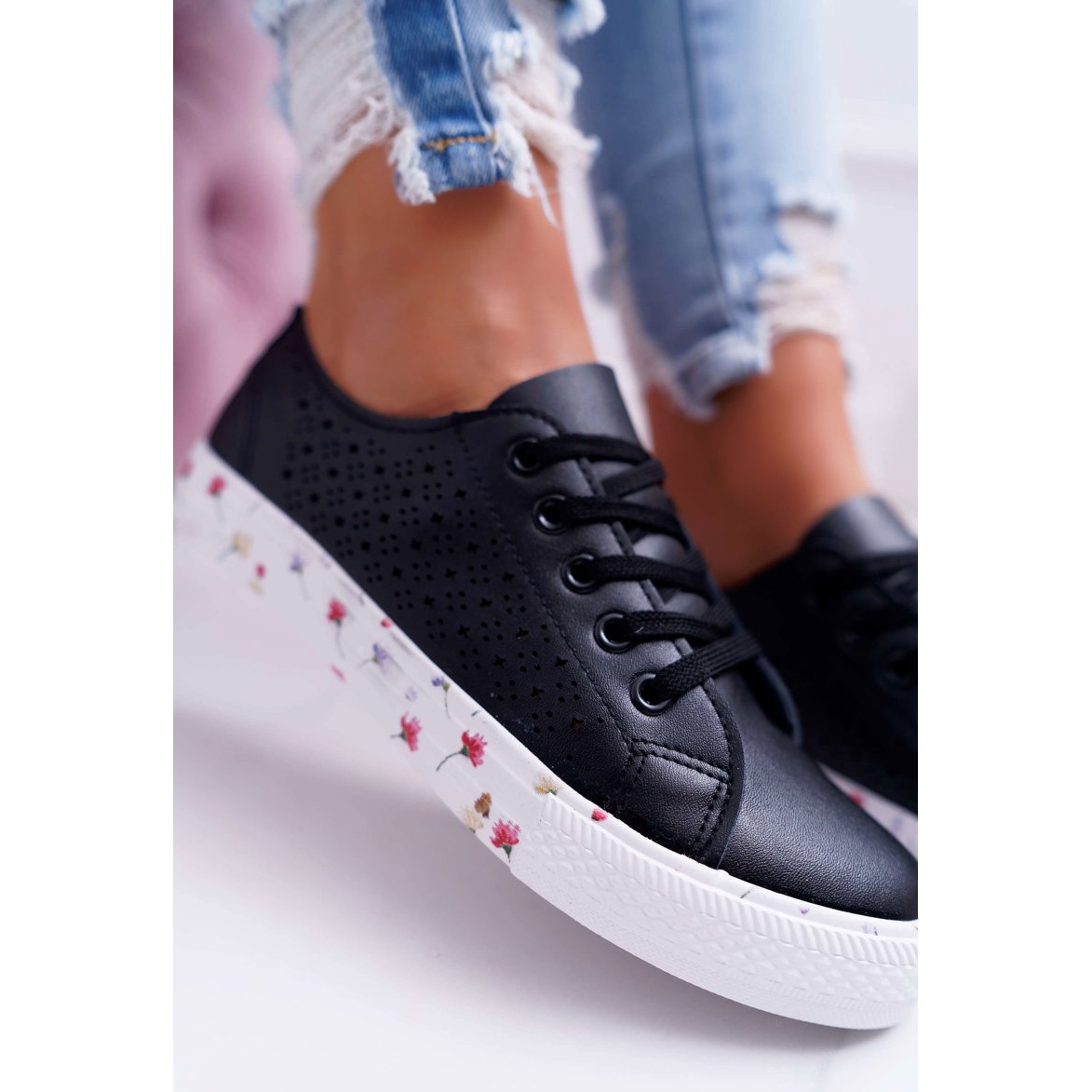 Détails: EVE Sneakers Femme Avec Fleurs Ajourées Noires Loriann le noir