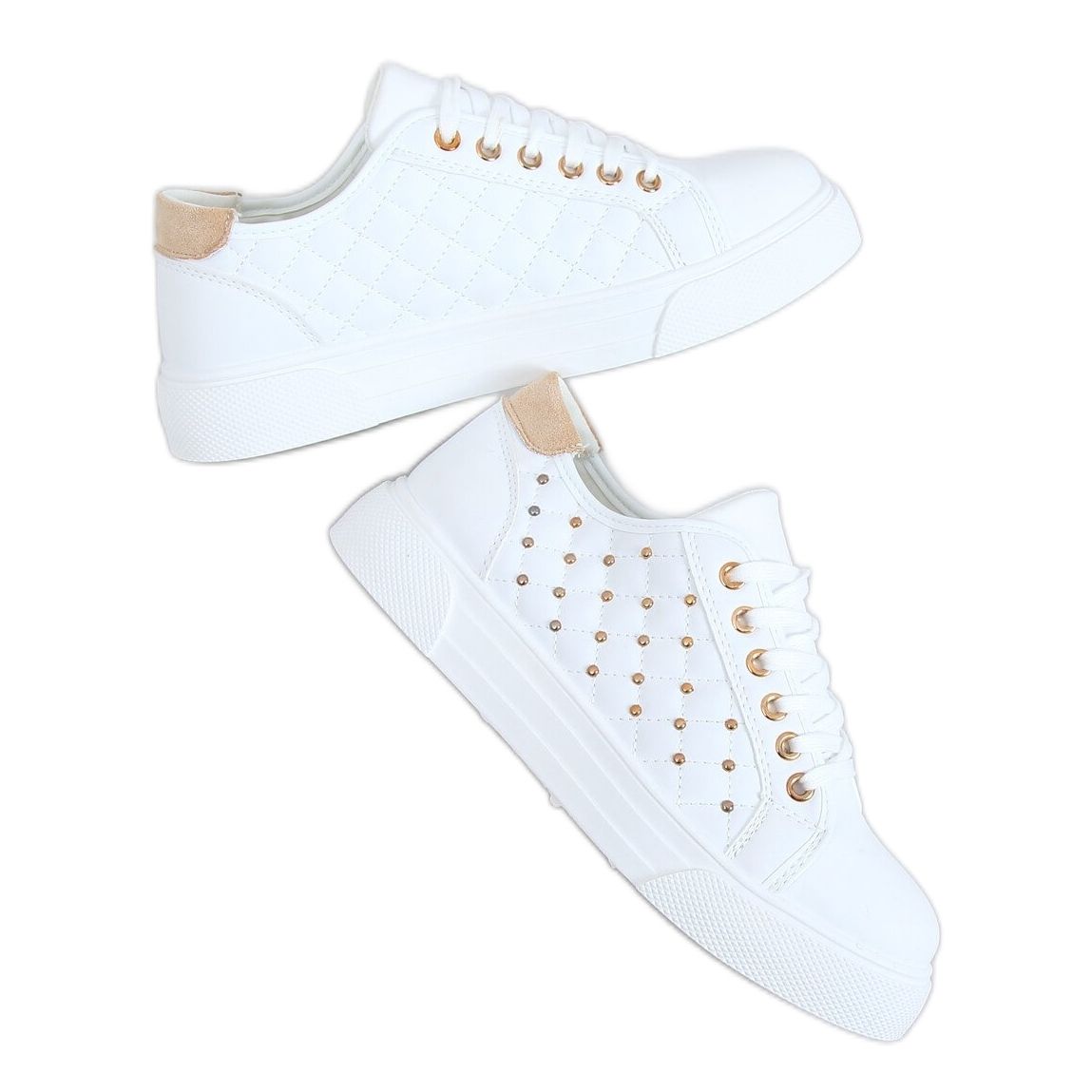 Inna marka Sneakers femme clous blancs LA124P Beige blanche
