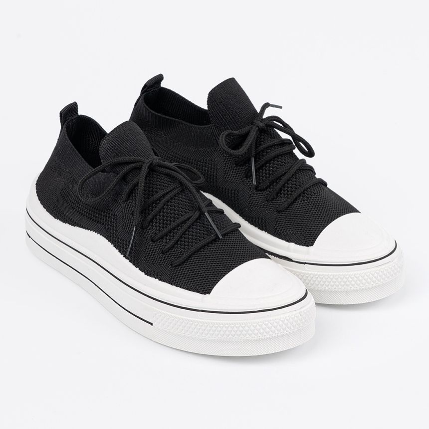 Détails: Shelvt Sneakers noirs glissés avec laçage décoratif