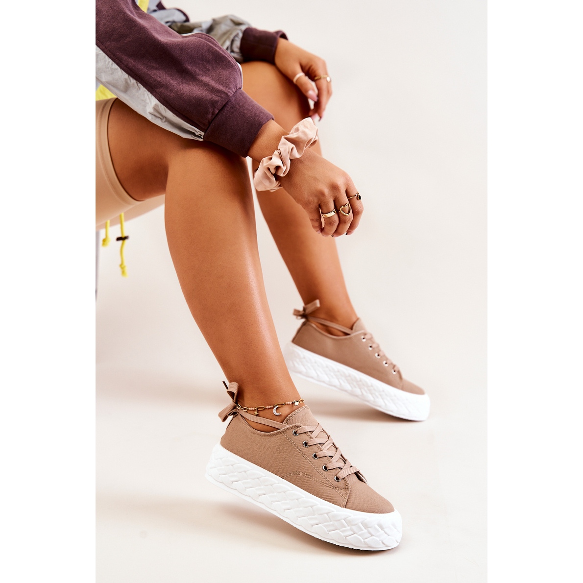 Les baskets élégantes de Suzane pour femmes sont une combinaison de confort et un look à la mode. Fabriqué en tissu, avec un insert de matériau et une plate-forme en caoutchouc solide (4 cm) décorée d'une tresse subtile - parfaite pour les stylisations quotidiennes et plus de sortie. Universal Beige va bien avec les pantalons et les jupes.