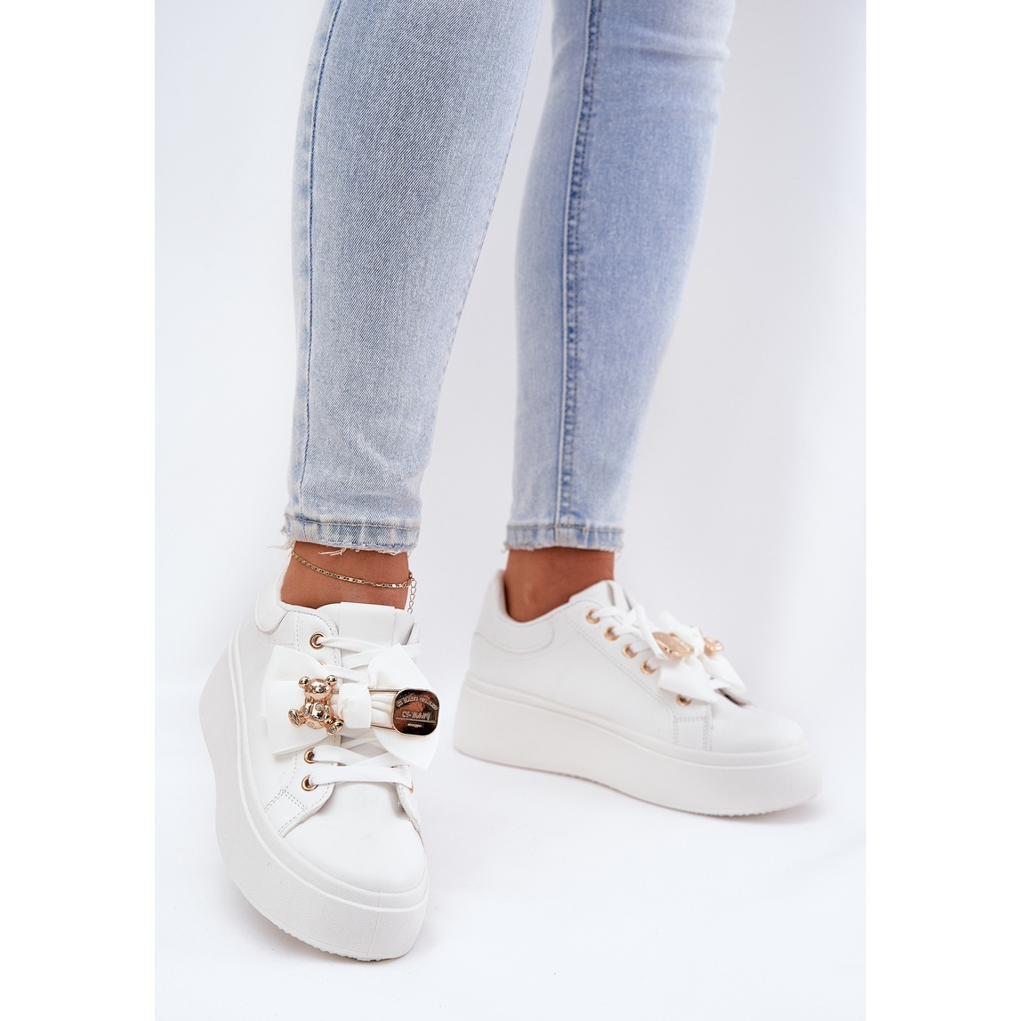 Sneakers pour femmes avec un arc et une broche avec un ours en peluche blanc