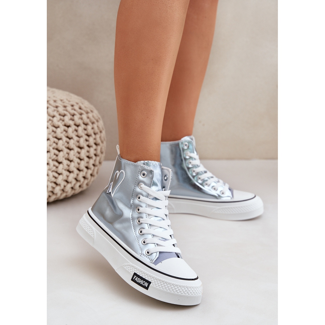 Un accent unique est le haut décoré d'un cœur charmant, ce qui ajoute une lueur subtile. Ces baskets métalliques attirent l'attention et sont un ajout parfait aux stylisations décontractées. Grâce à leur polyvalence, ils sont excellents en combinaison avec un jean, des robes ou des pantalons de sport.