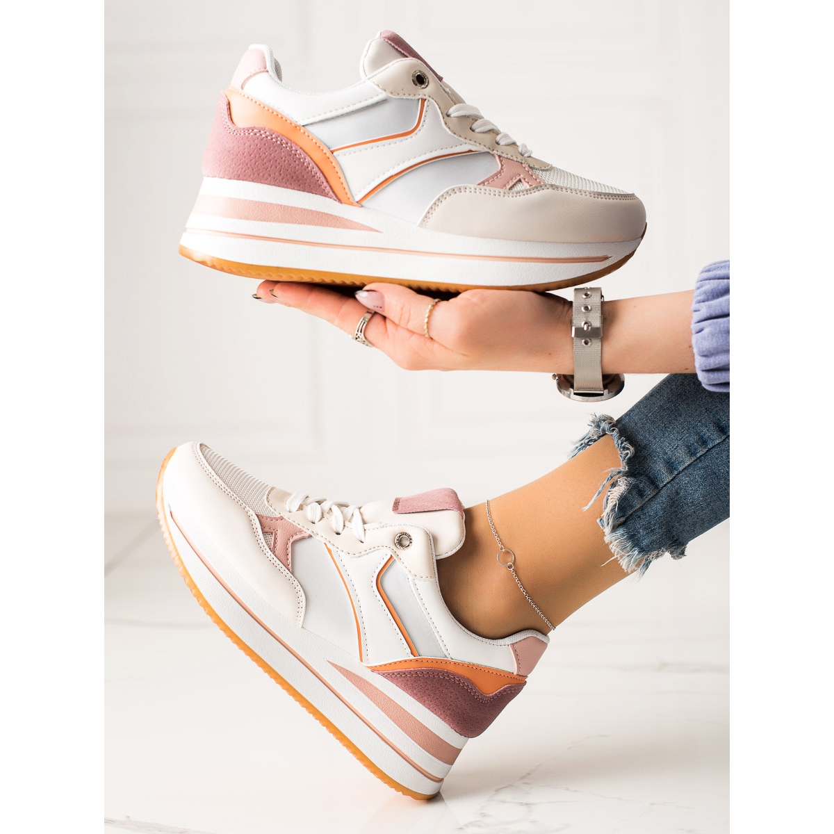 Nous vous présentons les baskets à plateforme colorées de la marque TRENDI - une combinaison parfaite de style sportif et de charme décontracté. Ces chaussures uniques, disponibles en blanc avec des accents multicolores, attireront certainement l'attention et ajouteront du caractère à n'importe quel style.