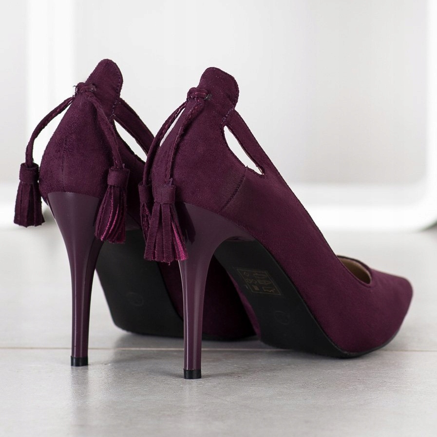 Un talon haut de 10 cm souligne la silhouette et ajoute de la confiance en soi. Les franges, détail original, donnent aux talons hauts un caractère final, les rendant un complément parfait à tout style élégant. La couleur violette en fait non seulement un accessoire à la mode mais aussi un accessoire très universel.
