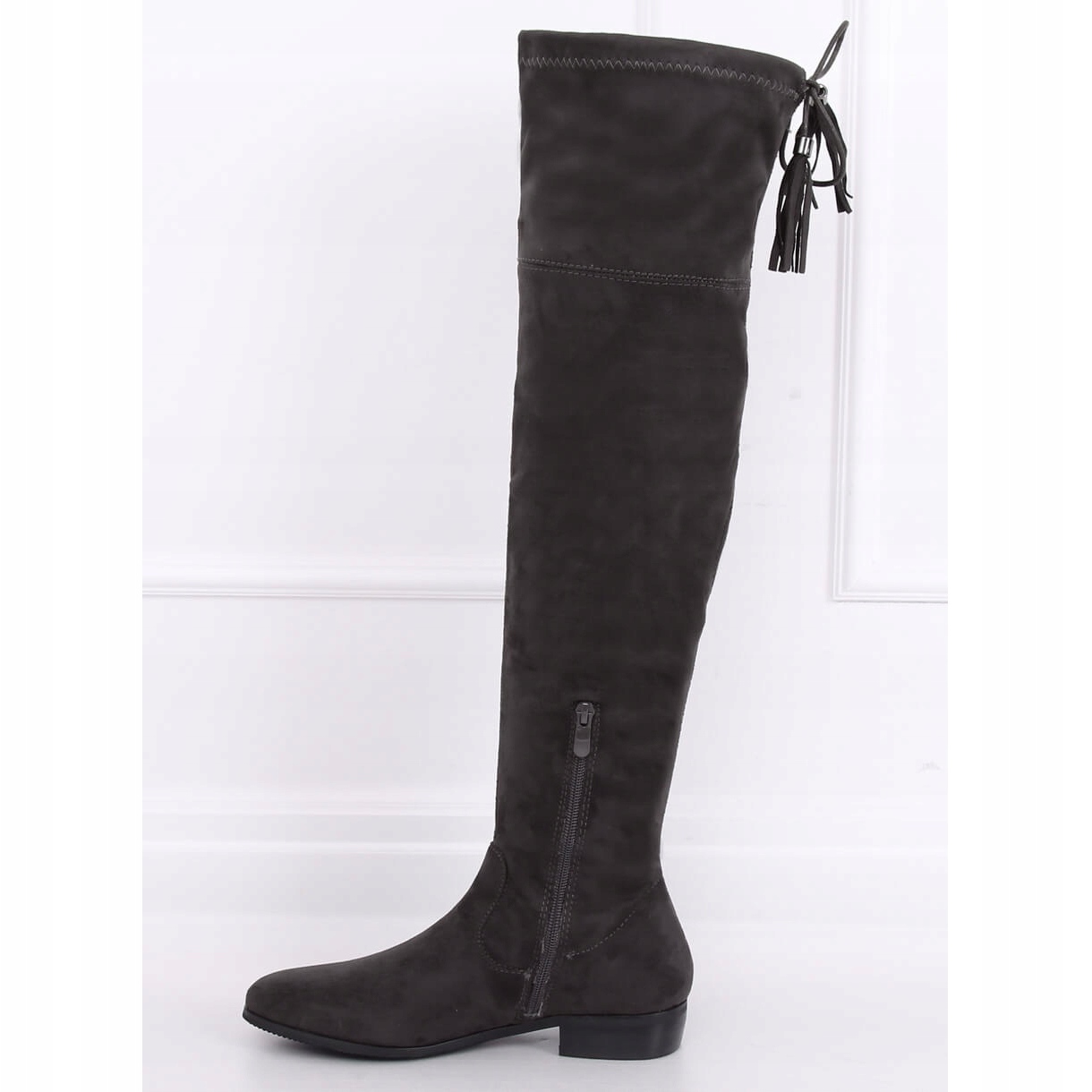 Les mousquetaires ont un bout en amande, ce qui leur donne une forme élégante, et le talon plat de 2,0 cm les rend confortables à porter toute la journée. La tige haute, arrivant au-dessus du genou, met en valeur la silhouette, et la couleur grise s'inscrit dans les dernières tendances, tout en étant un ajout universel à toute garde-robe.