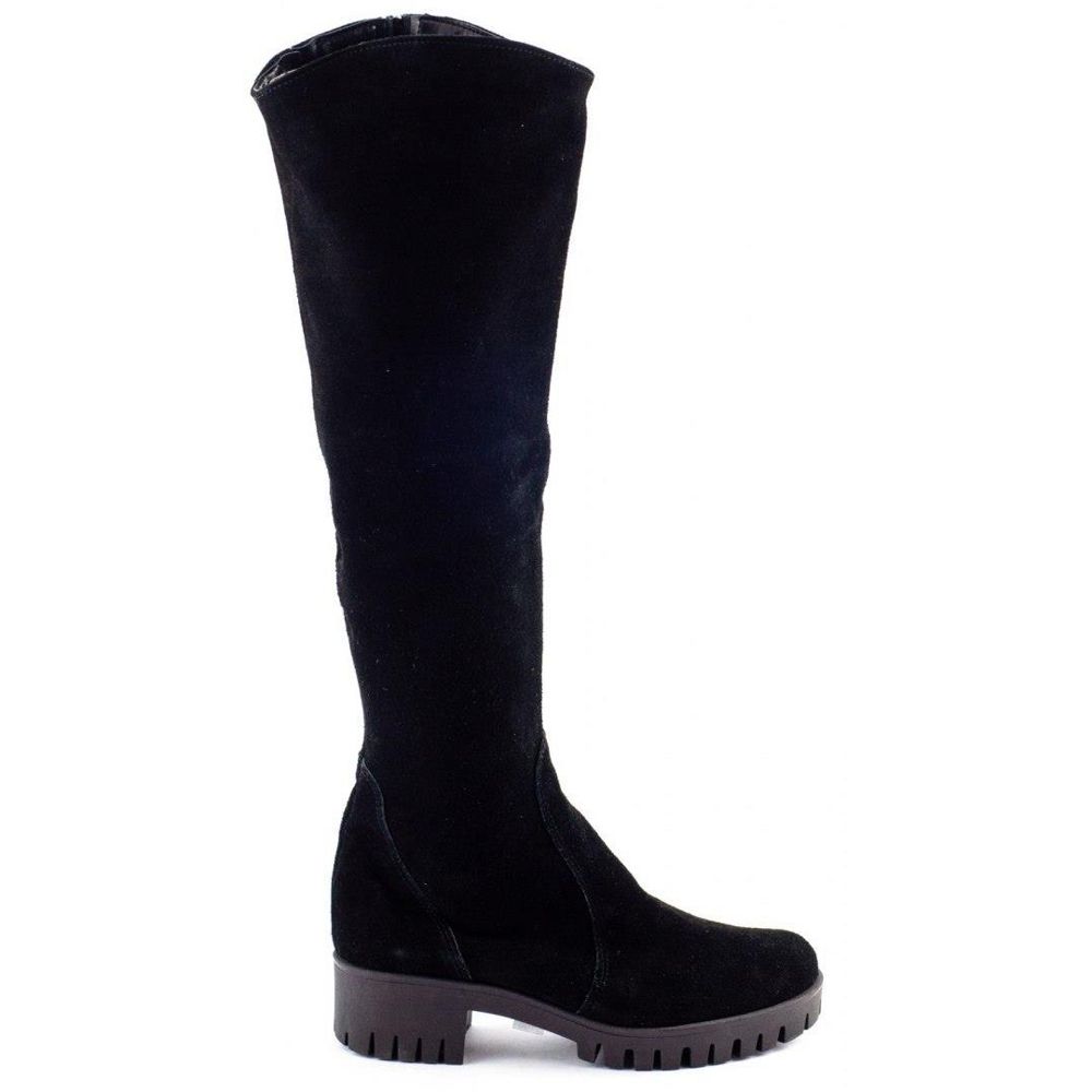 Des bottes d'olivier classiques et élégantes en cuir naturel sont une proposition pour des jours plus frais. Le modèle dans un noir intemporel avec une serrure à l'intérieur de la tige combine le confort avec une apparence élégante - l'isolation offre un confort thermique en hiver, et un post 4 cm de haut stable ajoute une figure féminine de légèreté sans perdre de confort.