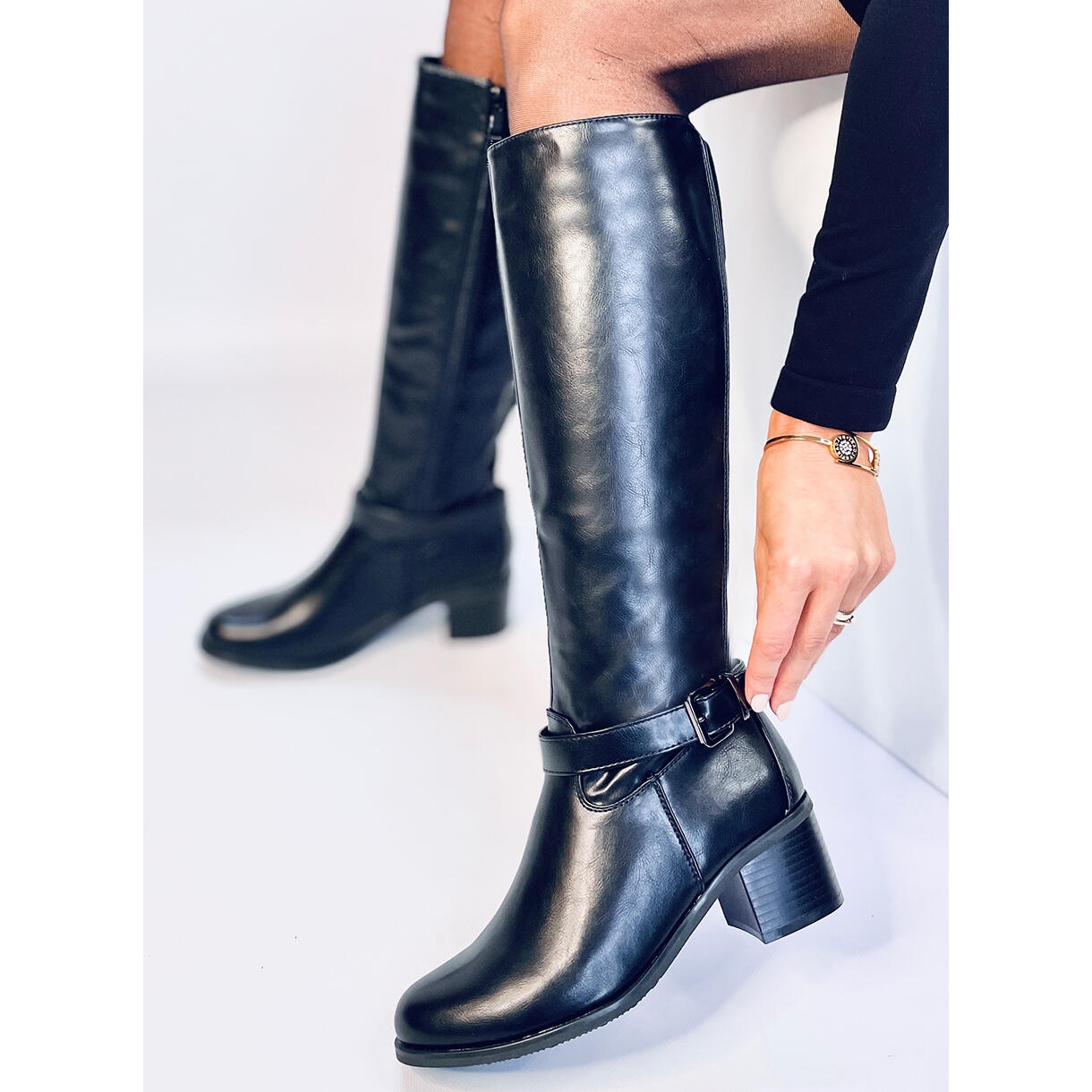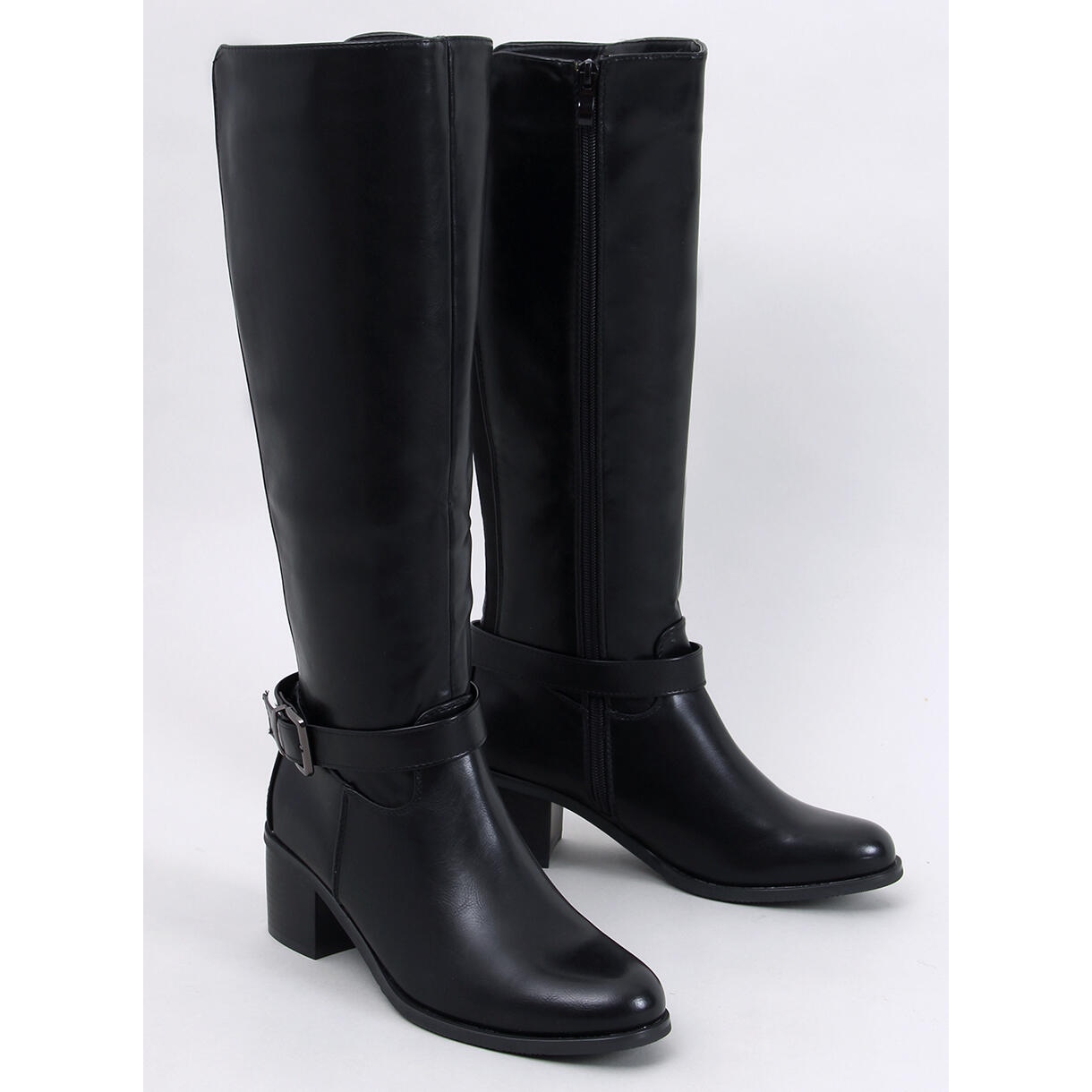 Les bottes à hauteur de grain sont des bottes pour femmes, au design élégant et classique. Les chaussures sont fabriquées en cuir écologique de première qualité. Ils se distinguent par un détail intéressant : des inserts en caoutchouc flexibles à l'arrière, qui assurent une parfaite adhérence à la jambe. Pour un confort d'utilisation, les bottes sont équipées d'une fermeture éclair pratique. Les chaussures semblent lisses, sans aucun motif. La couleur est le noir universel.