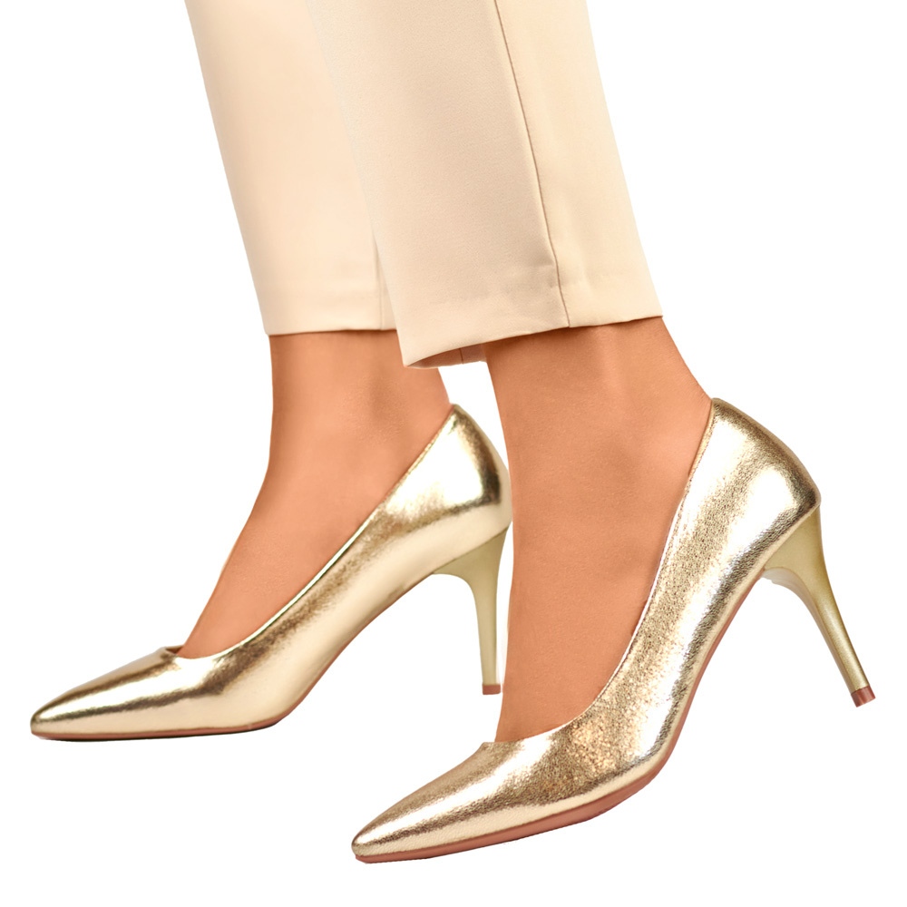 Si vous recherchez des chaussures spectaculaires qui ajouteront une splendeur de stylisation du soir, ces pompes en or seront un excellent choix.