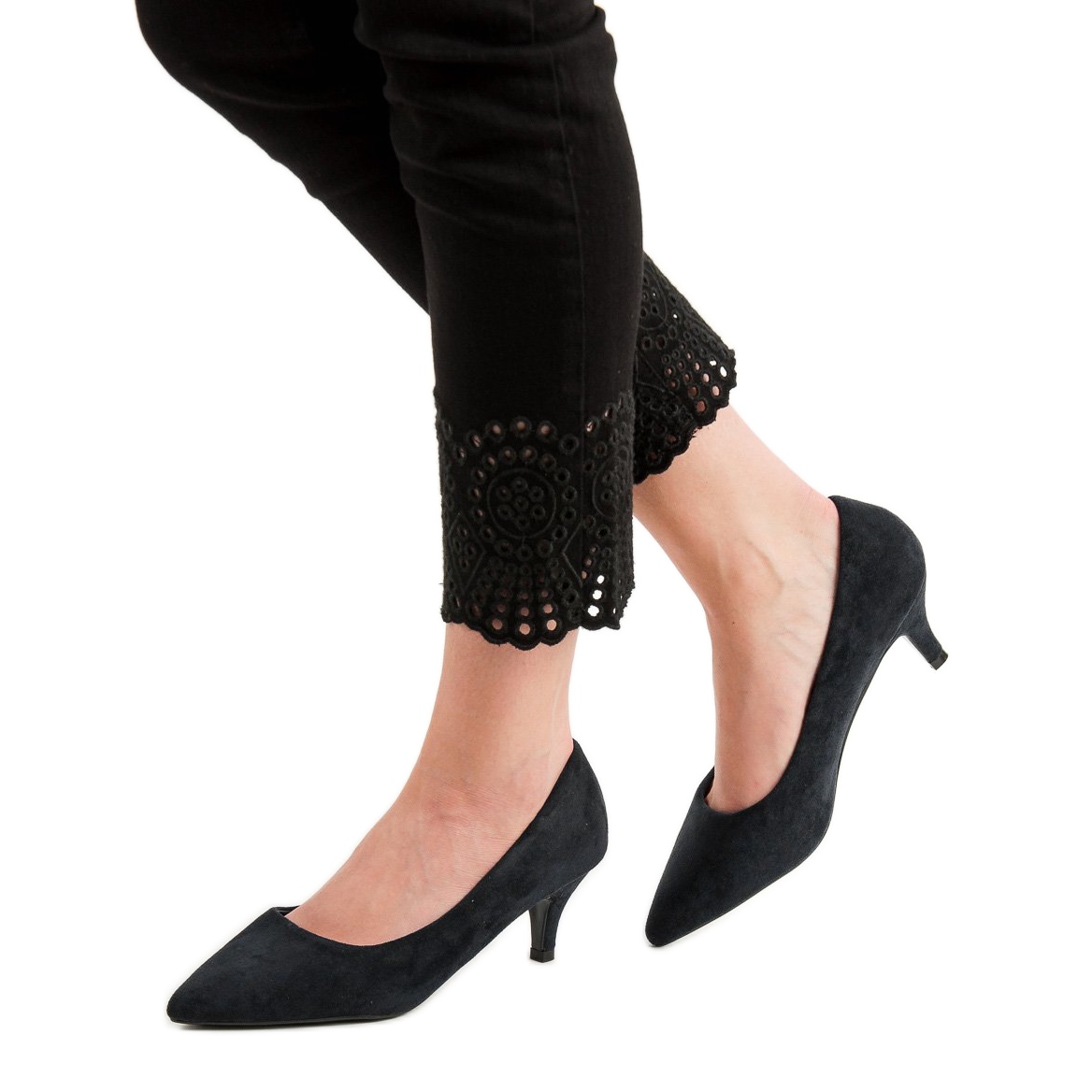 Découvrez l'élégance et le confort avec les talons bas noirs Nio Nio ! Ces escarpins élégants sont le choix parfait pour les femmes qui apprécient la combinaison du style classique et des dernières tendances de la mode. Confectionnées en cuir suédé écologique, elles sont extrêmement chics et leurs bouts pointus ajoutent un charme féminin.