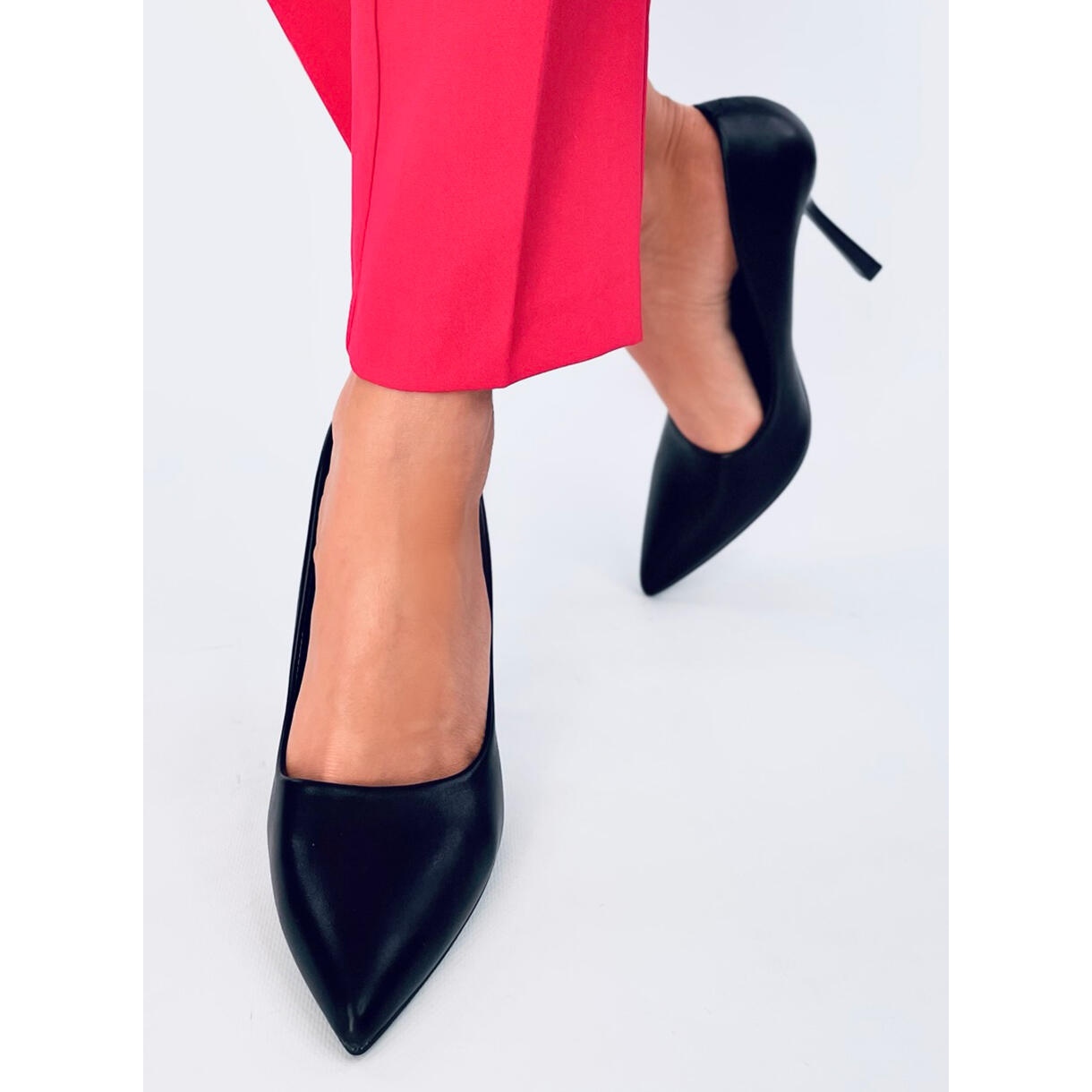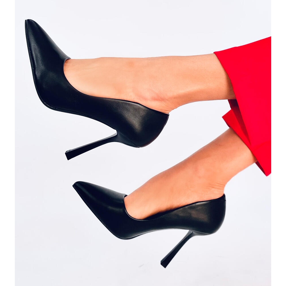 Les créateurs de ces talons hauts insolites ont misé sur le minimalisme, qui séduiront certainement tous les amateurs d'élégance intemporelle. Les bouts légèrement pointus leur confèrent un charme subtil et la surface lisse et noire en cuir écologique de haute qualité les rend non seulement extrêmement élégantes, mais également respectueuses de l'environnement.