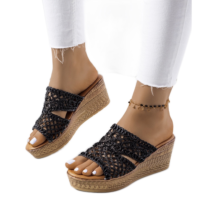 Découvrez le confort et le style extraordinaires offerts par les sandales compensées noires Clara, le choix parfait pour toute femme moderne. Fabriquées en cuir écologique de haute qualité, ces tongs sont non seulement extrêmement élégantes, mais offrent également un confort exceptionnel au quotidien. Le modèle SYT-15 se caractérise par une structure ajourée qui permet une libre circulation de l'air, empêchant vos pieds de transpirer même pendant les journées les plus chaudes.