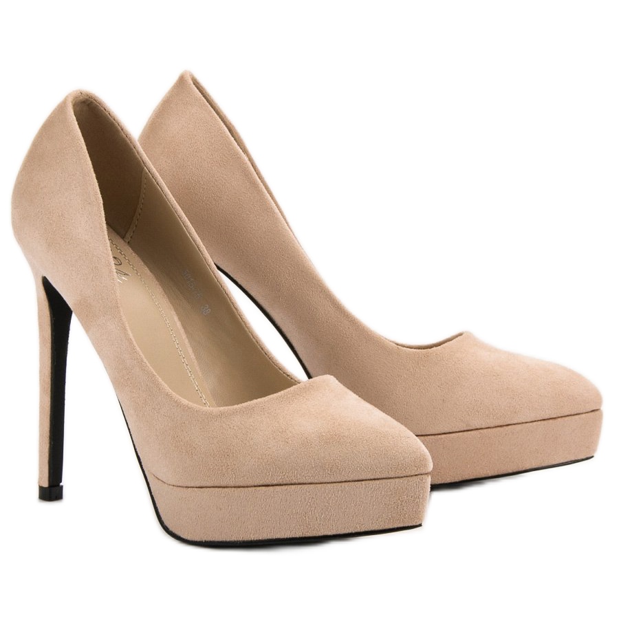 Fabriquées en cuir suédé écologique de haute qualité, ces chaussures sont non seulement élégantes, mais sont également respectueuses de l'environnement. La hauteur du talon de 13 cm et la hauteur de la plateforme de 2,5 cm les rendent plus attractives tout en assurant un confort de port. Un bout rond et un talon renforcé intégré sont des détails qui augmentent encore le confort de port.