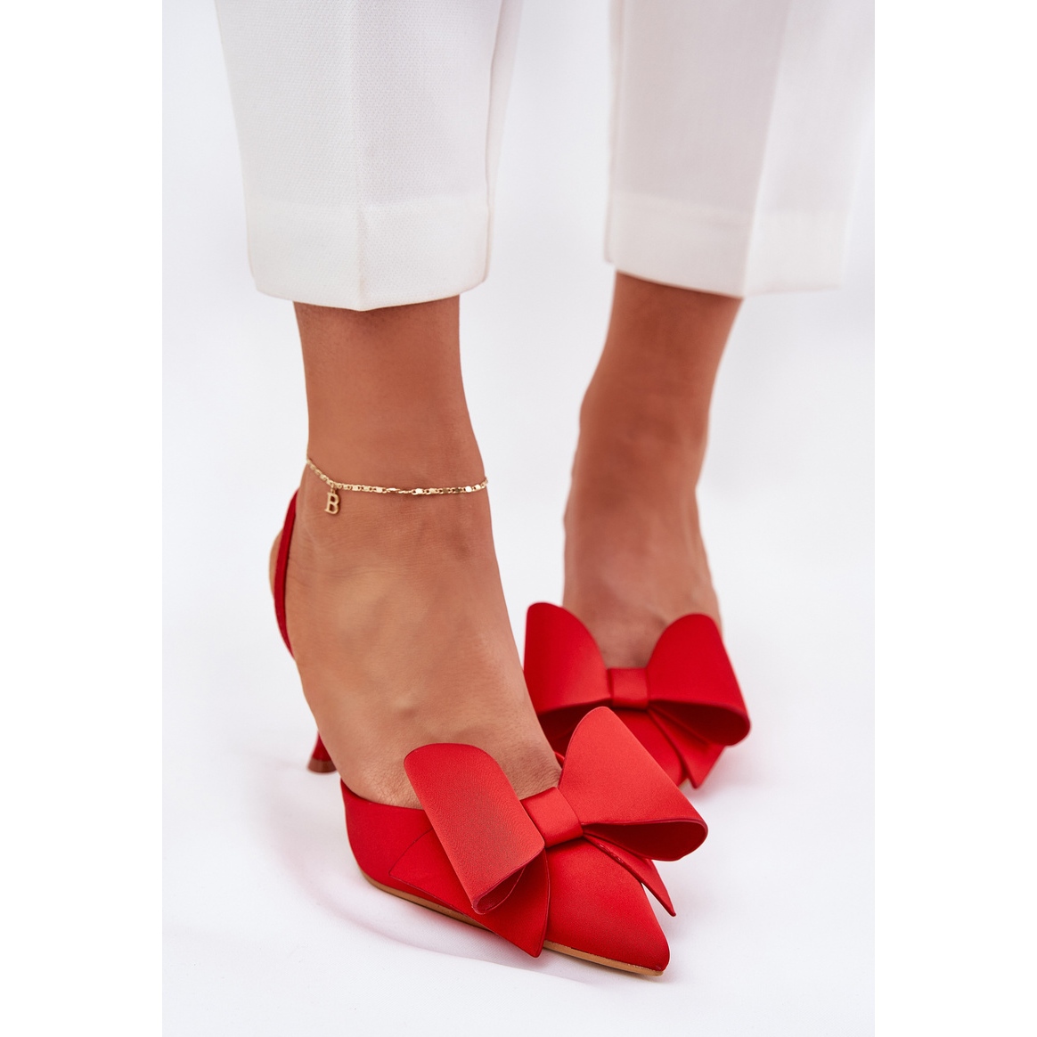 ** Talons hauts avec des talons nus et un arc rouge - le choix parfait pour une femme élégante! **