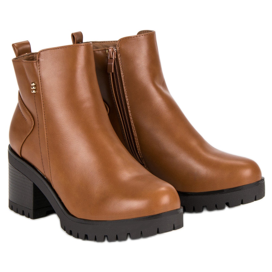 Nous vous présentons des bottines à talons hauts marron camel - le choix parfait pour la saison automne et hiver, qui allie style et confort. Fabriquées en cuir écologique de haute qualité, ces bottines sont dotées d'un contrefort de talon renforcé, qui offre un soutien et une stabilité supplémentaires à chaque pas.