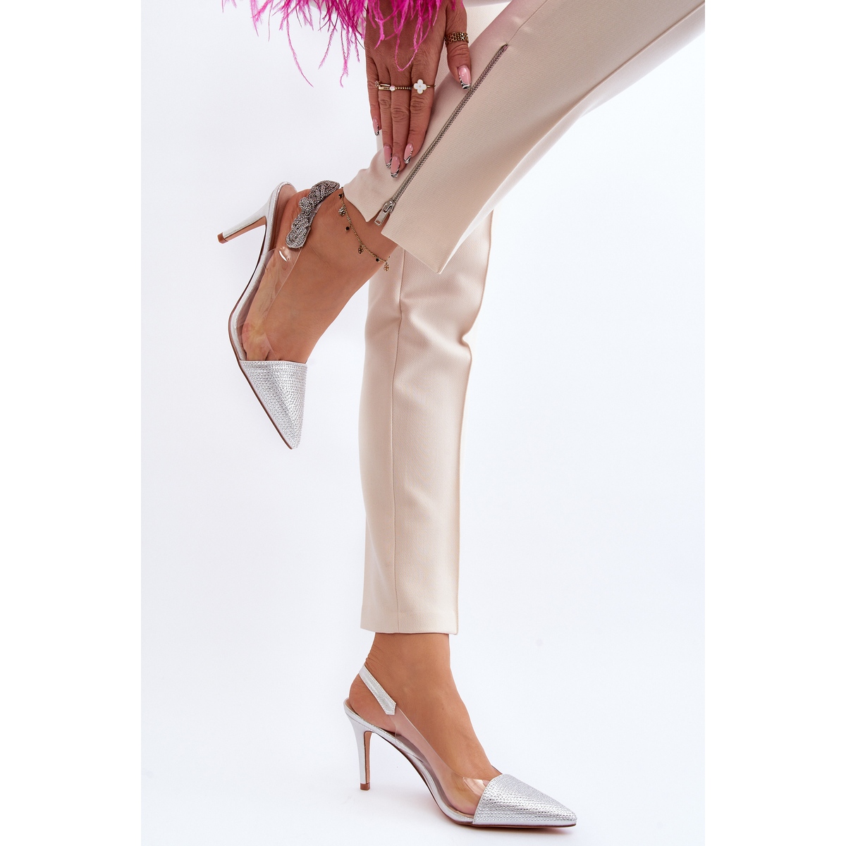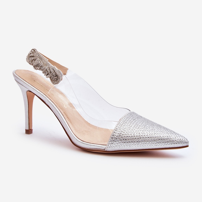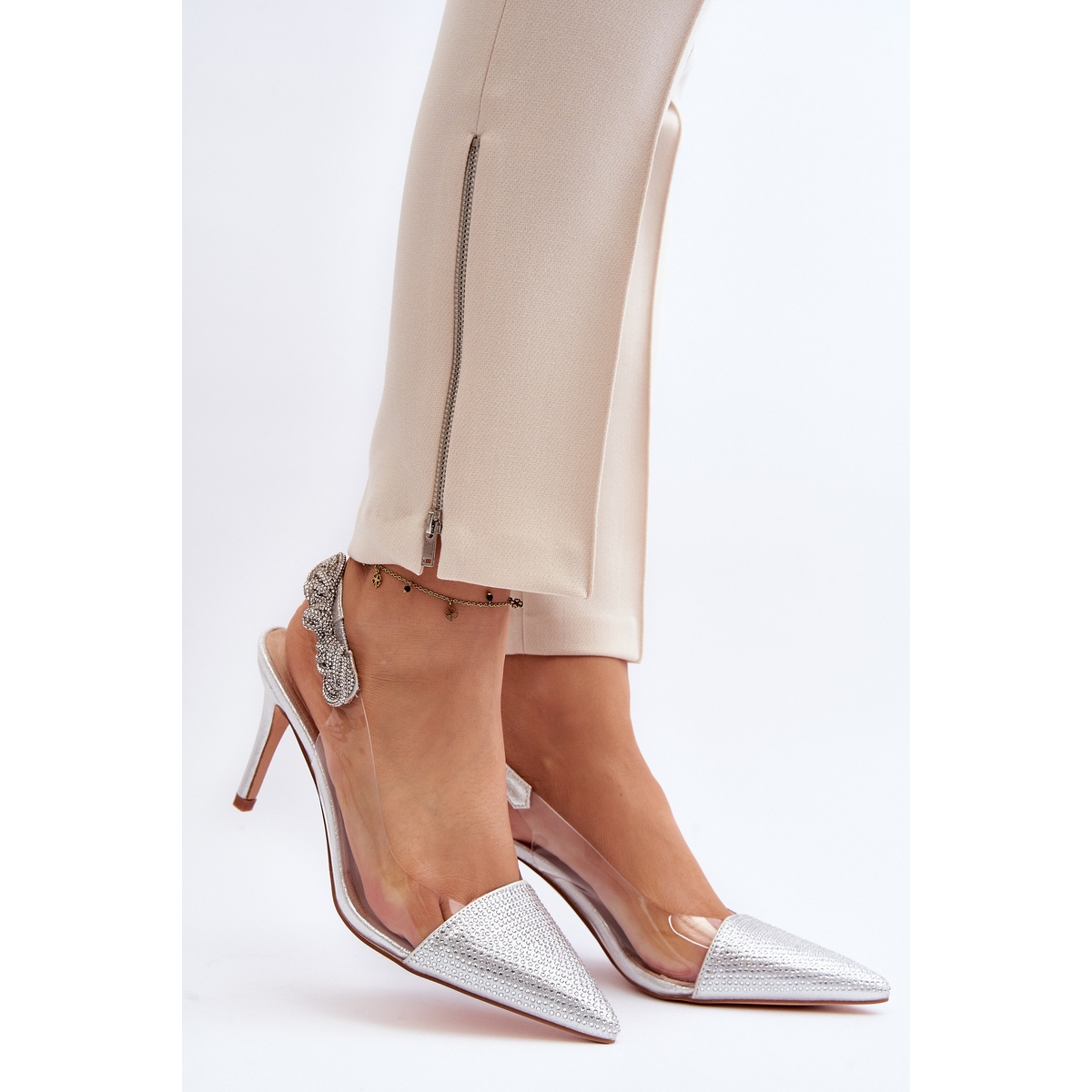 Ces talons hauts ont été conçus pour les femmes qui apprécient le style classique avec une touche de modernité. Ce modèle se distingue par sa couleur argentée, qui attire sans aucun doute l'attention et ajoute de la brillance à n'importe quel style. Ils sont enrichis de décorations subtiles sous forme de zircons et de strass, ce qui en fait un complément original aussi bien aux tenues de soirée qu'aux tenues plus décontractées.