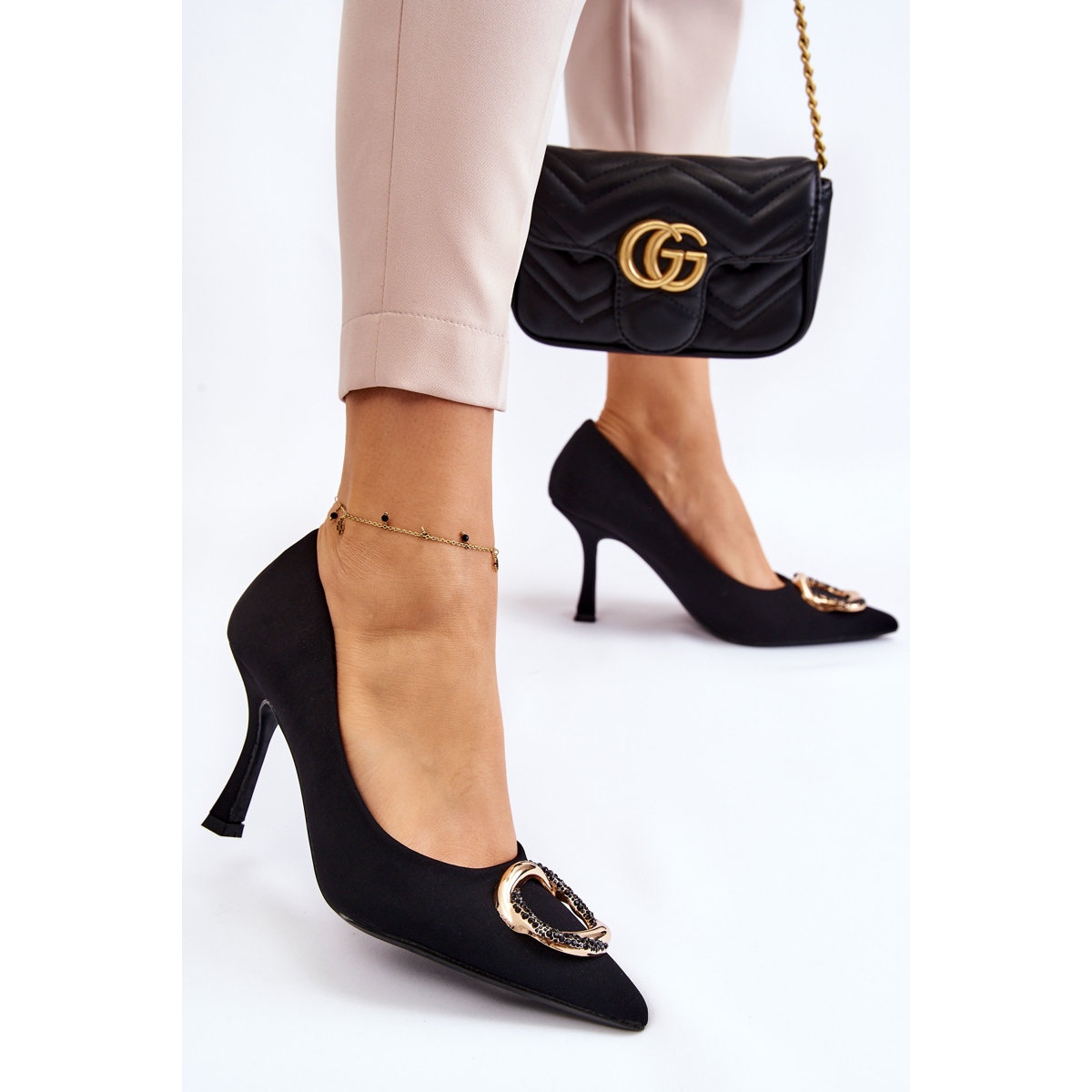 PS1 PS1 Talons hauts élégants avec une décoration précieuse noire à la mode le noir
