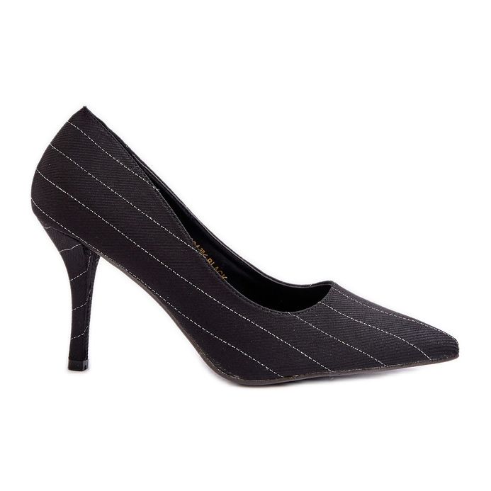 - Modèle: Talons hauts en tissu noir rayé pour femmes