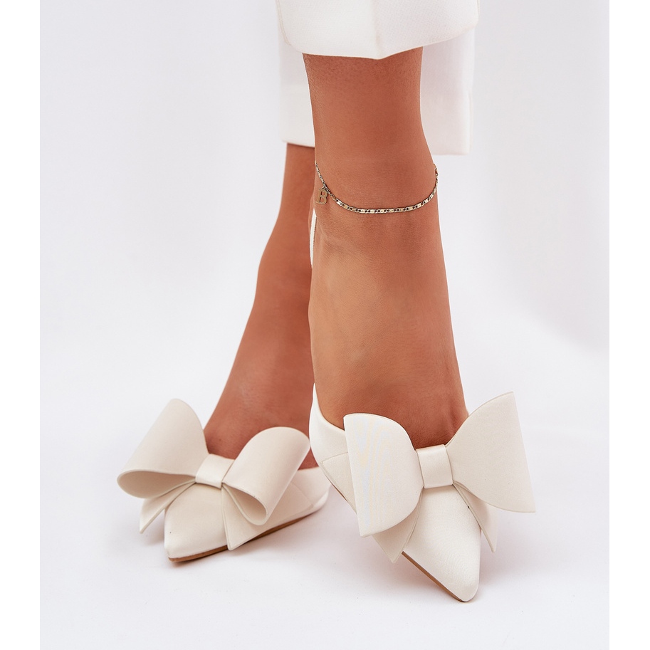 Nous présentons des talons élégants avec des talons nus et un arc en Ecru blanc, qui sont le choix parfait pour chaque femme qui apprécie une combinaison de style et de confort. Fabriqués en matériau textile de haute qualité, ces talons hauts se réjouissent de leur conception et de leurs détails.