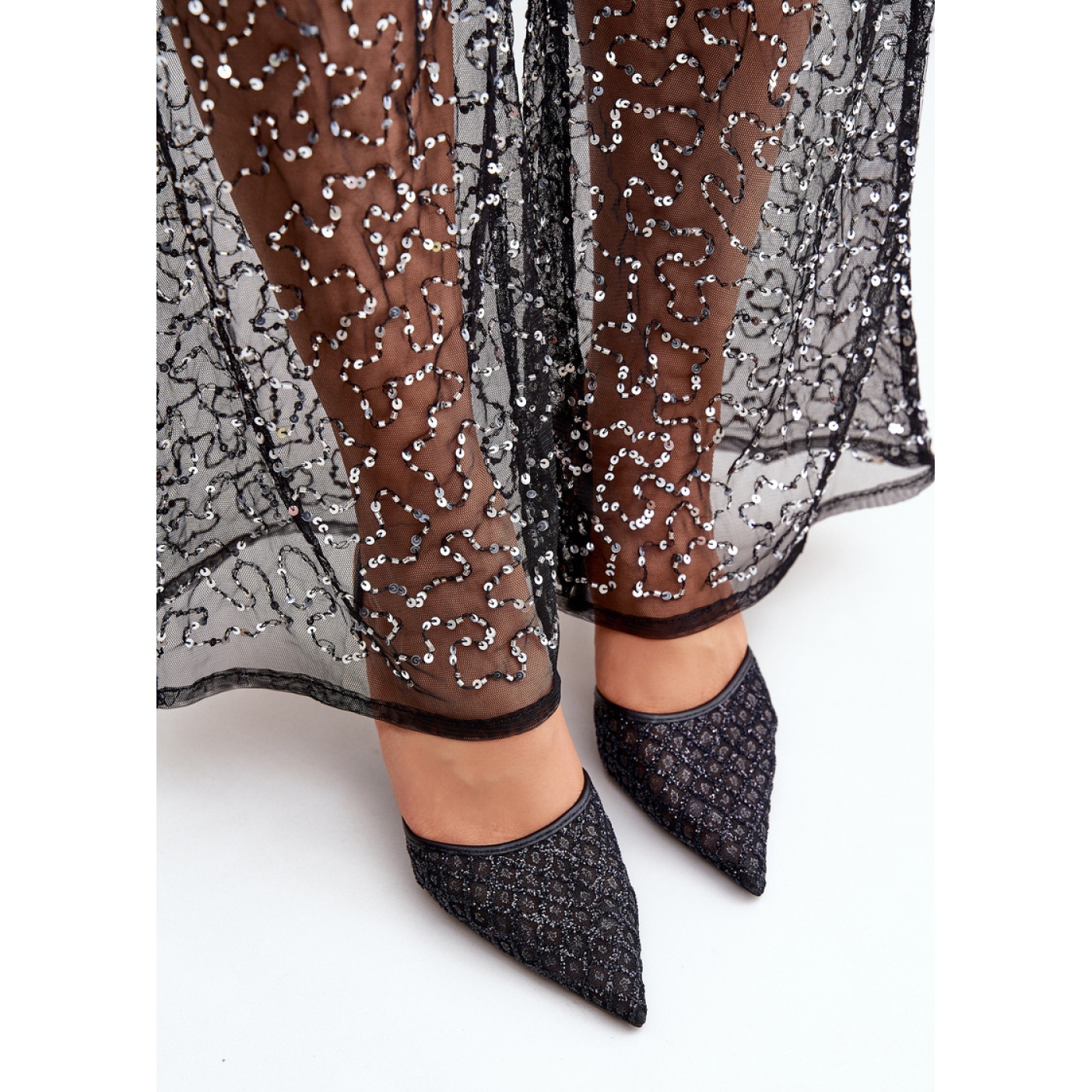 Talons hauts élégants pour femmes décorés de particules de paillettes qui leur donnent un éclat unique. Ce modèle a des bouts pointus qui affinent optiquement les jambes et une semelle intérieure souple en éco-cuir, assurant un confort de port. Ces chaussures élégantes sont parfaites pour les sorties en soirée, les célébrations ou les réveillons du Nouvel An, ajoutant un charme et une classe uniques à votre style.