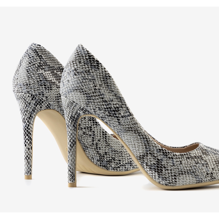 Découvrez l'élégance et le style classique avec les talons hauts Grace noirs, qui ravissent avec un motif peau de serpent original. Ces escarpins uniques sont le choix parfait pour toutes les fêtes et occasions spéciales. La finition noire en éco-cuir attire non seulement l'attention, mais met également parfaitement en valeur la silhouette, affinant optiquement les jambes.