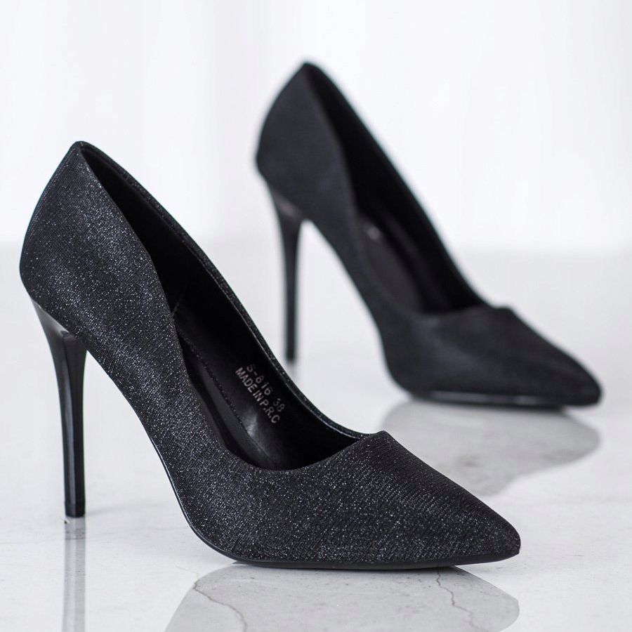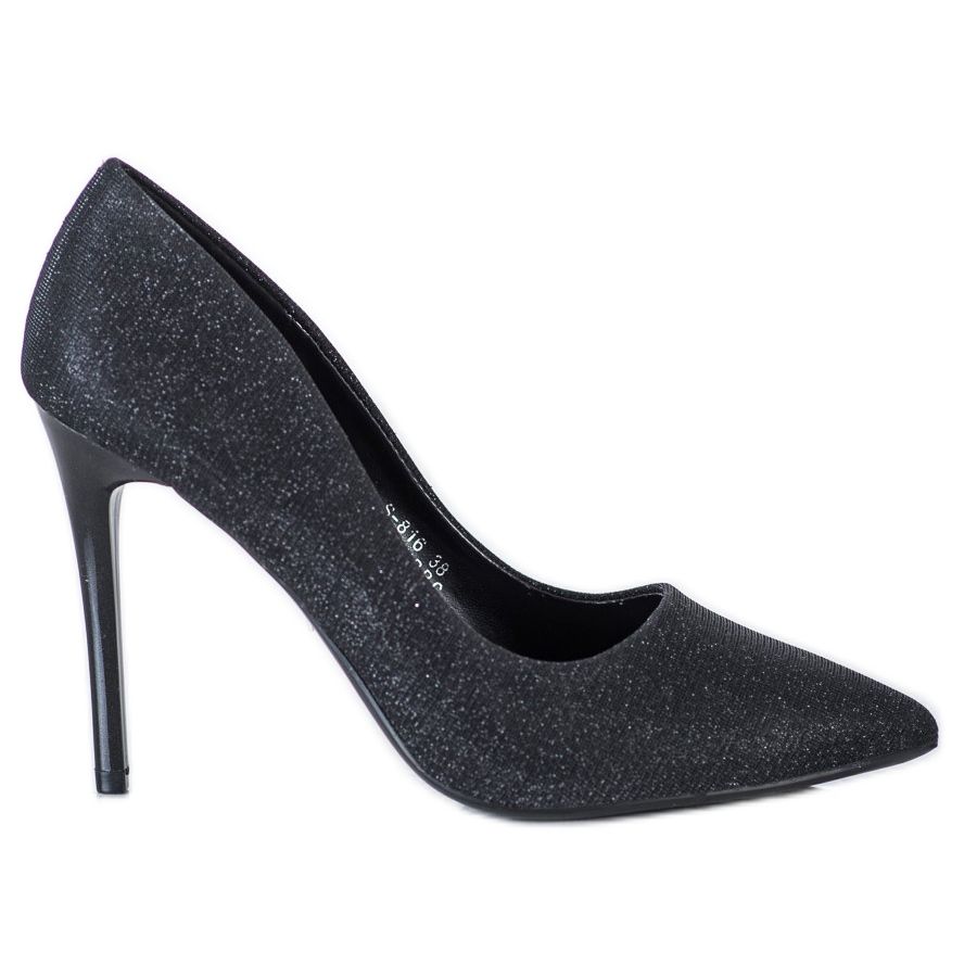 Les talons hauts noirs à paillettes ont un bout pointu, caractéristique des styles les plus en vogue dans le monde de la mode. La praticité est assurée par le fait qu'il s'agit de modèles slip-on, ce qui facilite l'enfilage et le retrait rapide des chaussures.