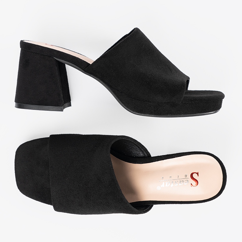 Les tongs SEASTAR sont caractérisés par un talon de theels de 8,5 cm de haut, ce qui ajoute non seulement une élégance, mais aussi de la stabilité lors de la marche. La finition externe noire et en daim leur donne du style, et la semelle intérieure en cuir écologique offre un réconfort tout au long de la journée.