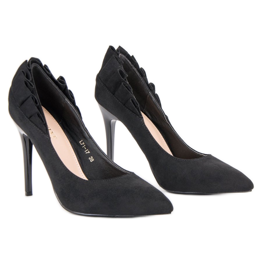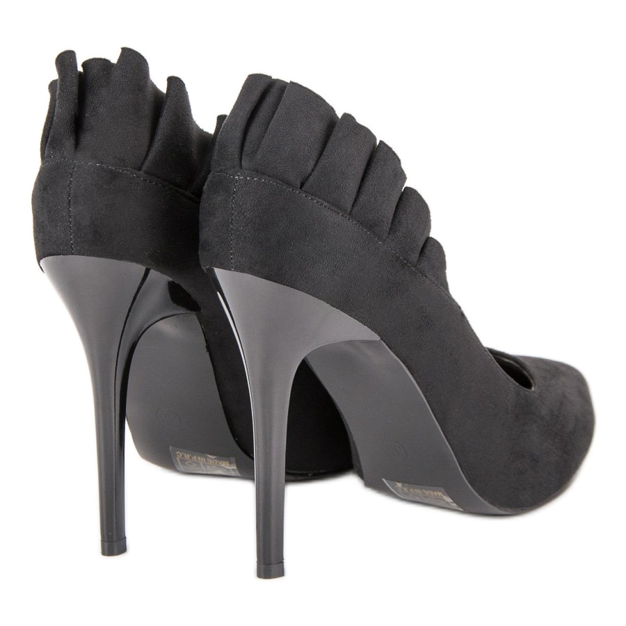 Ces talons hauts noirs sont une option parfaite pour toute célébration, comme les mariages, les baptêmes, les bals de finissants ou les rendez-vous romantiques. Quelle que soit l'occasion, ils attireront certainement l'attention et souligneront le caractère unique de chaque style. Le bout rond et l'élégante finition en cuir suédé font que ces chaussures se démarquent avec une présentation classique d'élégance.