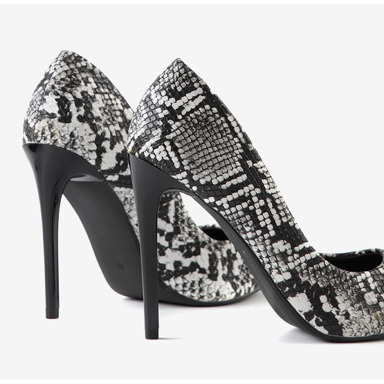 Détails: Talons hauts noirs et blancs à motif peau de serpent Andrew blanche le noir