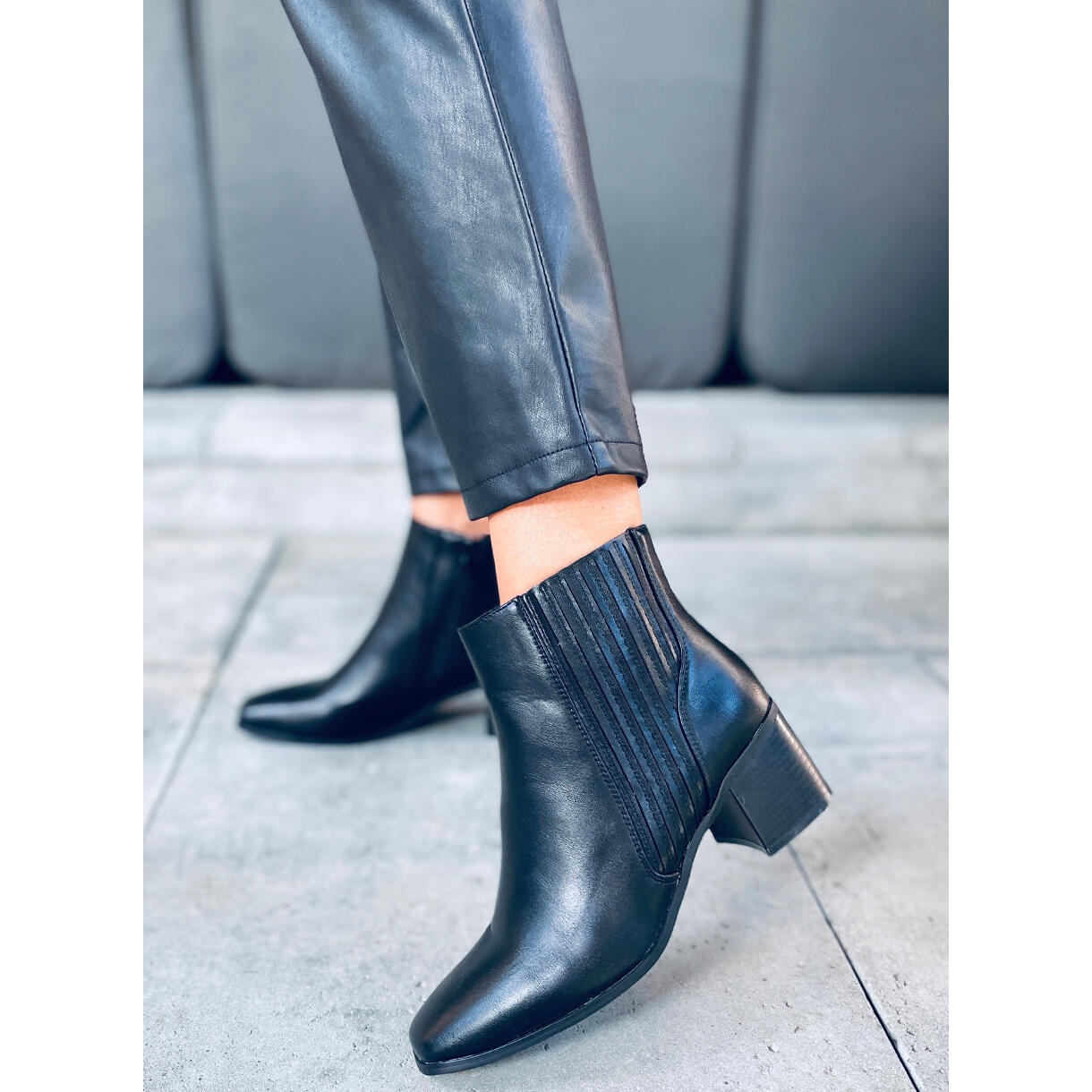 Les bottines à talons hauts Tama Black sont le choix parfait pour les femmes qui apprécient la combinaison du style classique et moderne. Fabriquées en cuir écologique de haute qualité, ces bottines pleine fleur se caractérisent par une élégante couleur noire et des bouts carrés, qui leur confèrent un caractère unique. Un large talon haut de 6 cm assure stabilité et confort lors des activités quotidiennes, et l'insert en caoutchouc ressemblant à des bottines Chelsea ajoute une touche tendance.