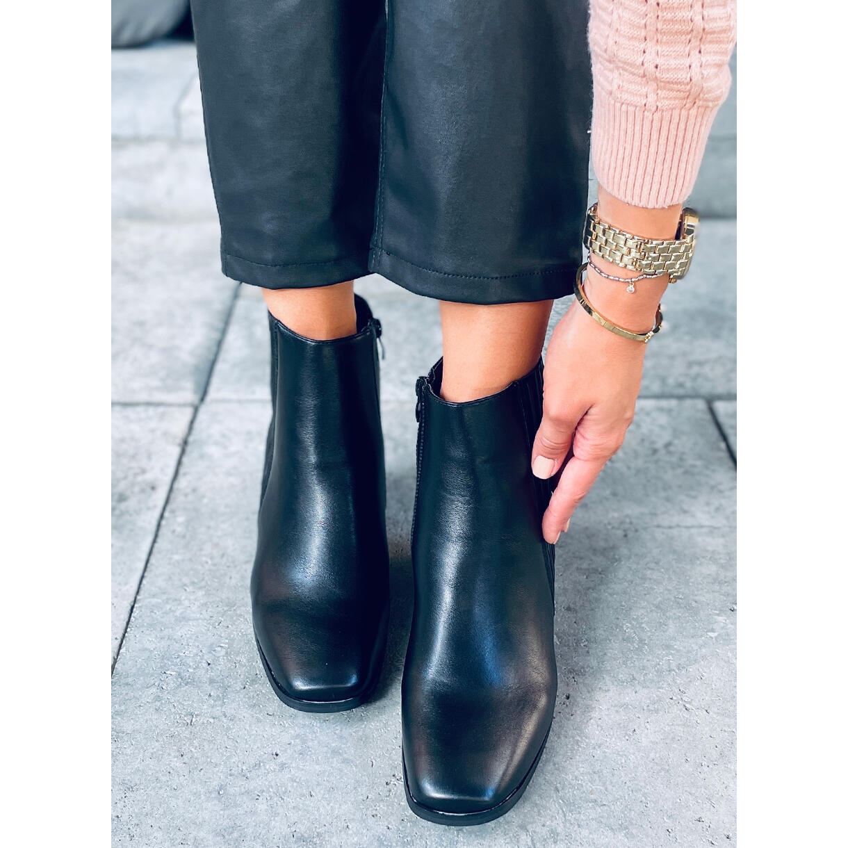 Les bottines Amelia Black sont non seulement un choix de mode, mais aussi une garantie de confort au quotidien. Leur construction durable et leur souci du détail leur permettent de durer longtemps. La tige jusqu'à la cheville et le talon large ajoutent de l'élégance et rendent les jambes plus fines.