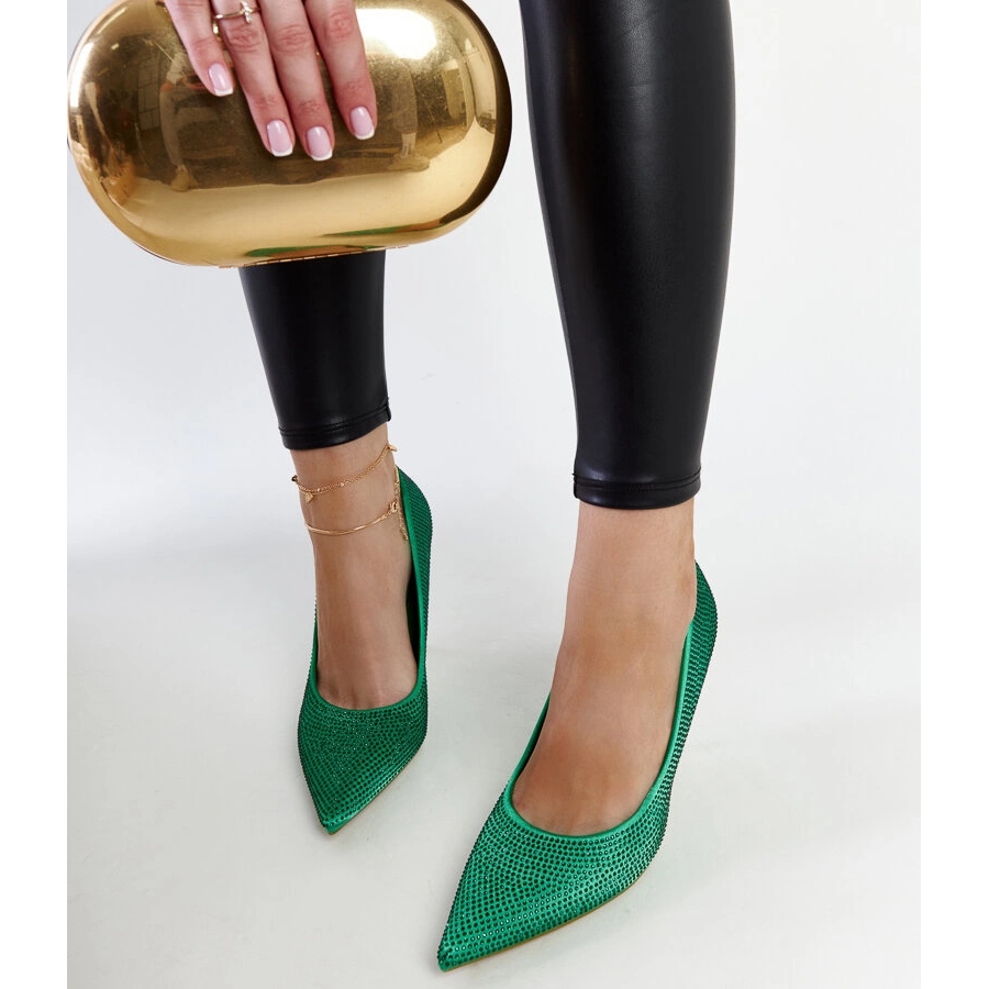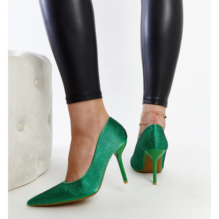 Green High Heels liena est un incontournable pour chaque femme à la mode qui veut ajouter un peu de fraîcheur et d'élégance. Fabriqués en plastique de haute qualité, ces chaussures sont caractérisées non seulement par une apparence spectaculaire, mais aussi par le confort de porter, grâce au design inséré. Le nez pointu leur donne un limon sophistiqué, et des strass subtiles sont un complément parfait à l'ensemble, ajoutant la splendeur et le style.