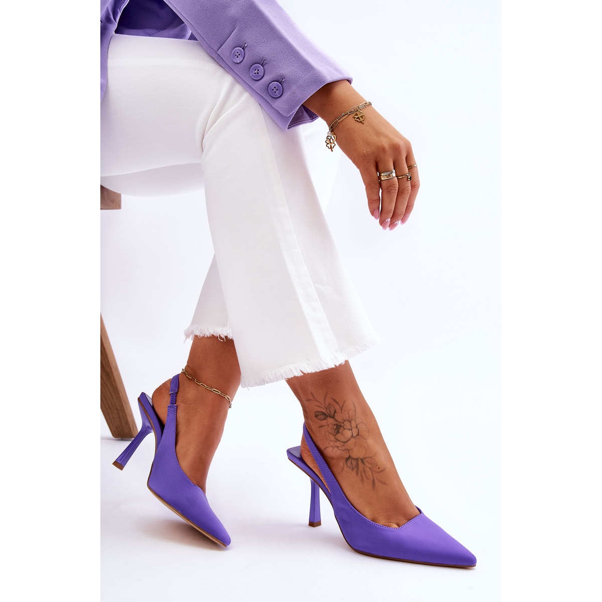 Les talons hauts classiques à bout pointu Whitley violets sont un incontournable dans la garde-robe de toute femme élégante. Ces escarpins élégants s'associeront parfaitement aussi bien avec des robes romantiques qu'avec des pantalons aérés et élégants, offrant un look unique en toute occasion.
