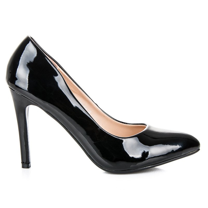 Ce sont des talons aiguilles vernis classiques du fabricant Small Swan, qui sont le complément parfait à tout style élégant. D'un noir profond, ces escarpins avec une hauteur de talon de 10 cm apporteront certainement confiance en soi et chic à chaque femme.