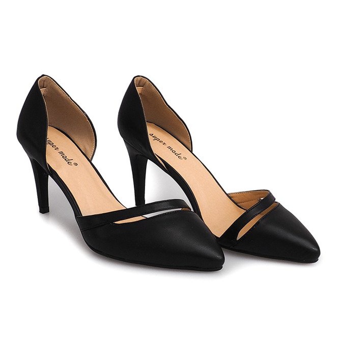 Les talons hauts ouverts 50737 en noir sont des chaussures élégantes qui correspondent parfaitement aux dernières tendances de la mode. Fabriqués en cuir écologique de haute qualité, ces escarpins classiques offrent non seulement un look élégant, mais aussi un confort de port. Leurs talons de neuf centimètres affinent efficacement la silhouette, mettant en valeur les jambes des femmes.