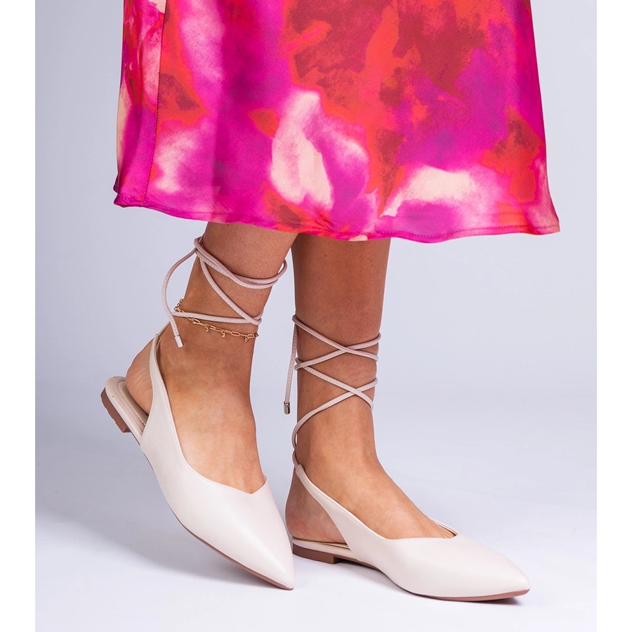 Nous présentons des talons plats beiges avec un écot-cuir, qui sera le choix parfait pour chaque femme qui veut combiner l'élégance et le confort. Le modèle NF-69P se distingue par un orteil classique et pointé qui ajoute un charme subtil à ces chaussures. La couleur beige des pompes se mélange harmonieusement avec toutes les stylifications, et la semelle brune en caoutchouc assure la durabilité et la stabilité utilisées.