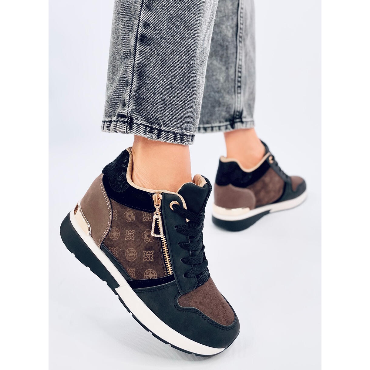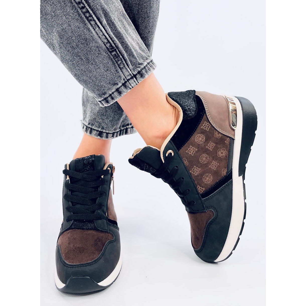 Conçues pour les femmes dynamiques qui ne veulent pas renoncer à l'élégance au quotidien, les baskets représentent un style glamour tout en possédant toutes les caractéristiques des chaussures de sport confortables. Leur plus grand atout est une cale de 6 cm de hauteur, qui allonge subtilement la silhouette sans alourdir les pieds. C'est une proposition idéale pour les femmes qui recherchent des chaussures de tous les jours, mais avec une touche d'originalité.