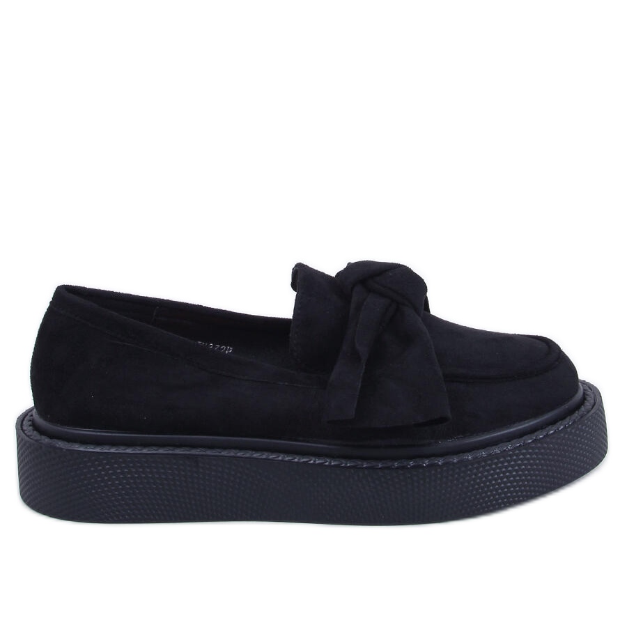 Les mocassins en daim avec un noir Tempelton sont un incontournable dans la garde-robe de chaque femme élégante. Ces chaussures noires et glissantes sur la plate-forme s'inscrivent parfaitement dans les tendances de la mode actuelles pour la saison d'automne-hiver. Leur conception unique se distingue par un arc inhabituel à l'avant, qui attire l'œil et ajoute une élégance à toute stylisation.