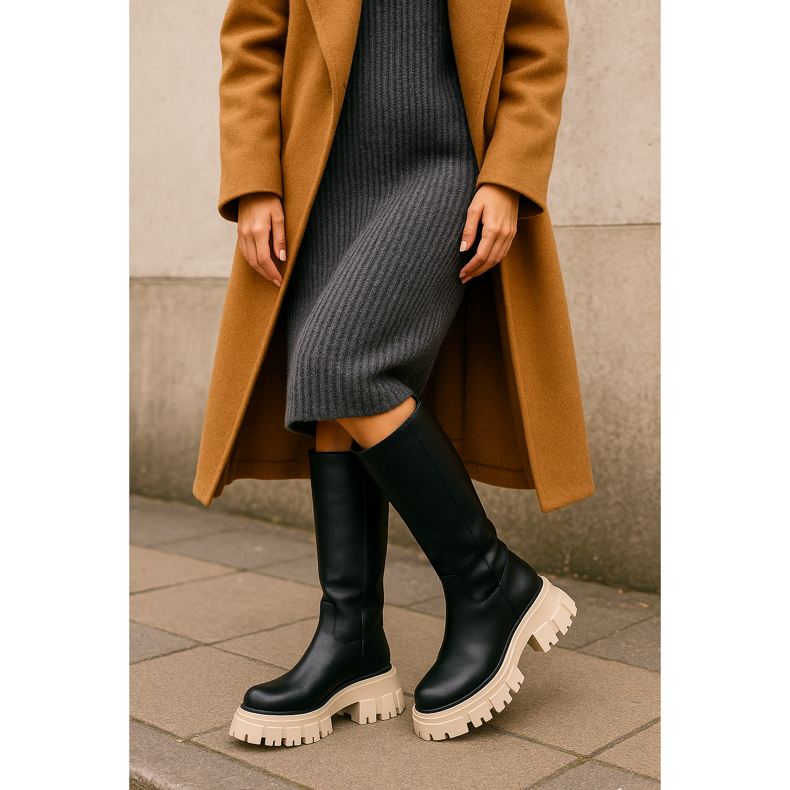 Les semelles massives sont un succès absolu de l'hiver 2025! Les bottes sur une semelle épaisse et tracteur ajoutent non seulement des centimètres de hauteur, mais assurent également la stabilité des surfaces glissantes. Cette tendance s'intègre parfaitement dans l'esthétique de Gorpcore, combinant les fonctionnalités avec le style urbain. Choisissez des modèles avec une semelle contrastée - des bottes noires avec une semelle blanche ou beige créent un effet visuel intéressant. Ces chaussures seront parfaites en combinaison avec des manteaux surdimensionnés et des robes en laine.