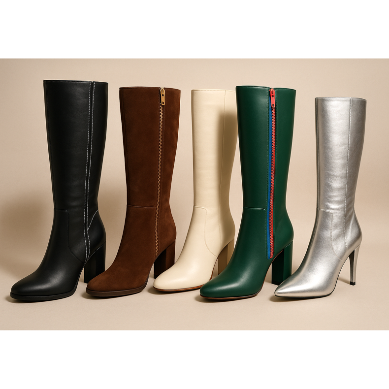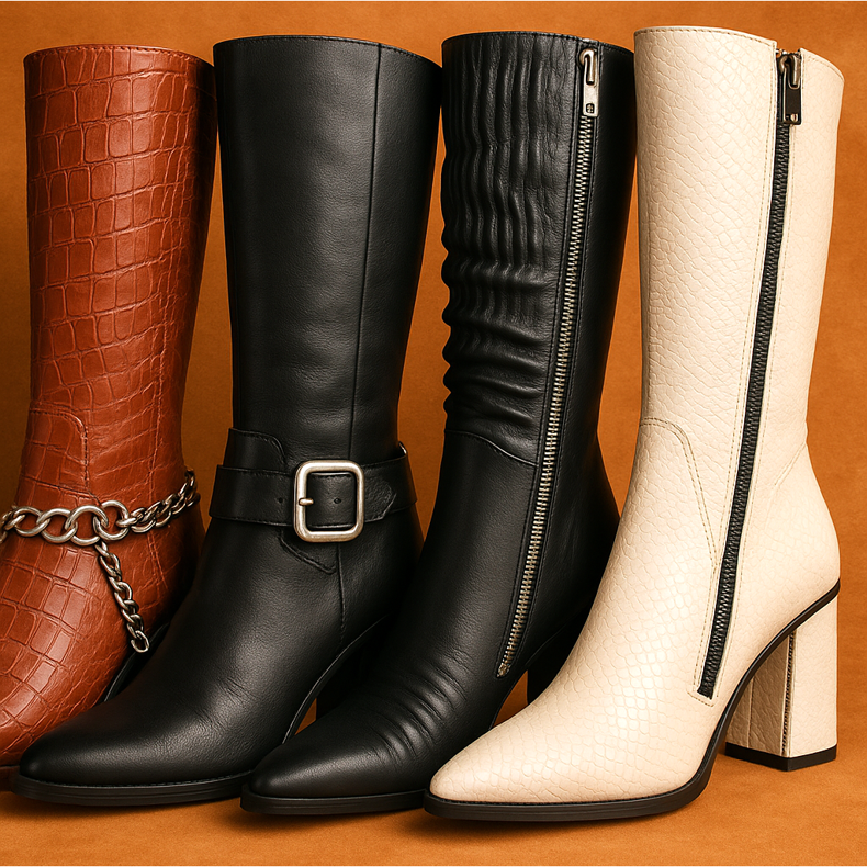 L'hiver 2025 est une période de matériaux de haute qualité. Le cuir naturel reste le leader incontesté - il est durable, respirant et sort magnifiquement. Le daim donne aux cosaques un aspect élégant et doux, mais nécessite des soins appropriés. Le cuir verni est un choix pour les personnes qui aiment briller, tandis que les finitions mates sont plus universelles. Les matériaux végétaliens qui imitent la peau deviennent de plus en plus populaires, tout en étant respectueux de l'environnement.