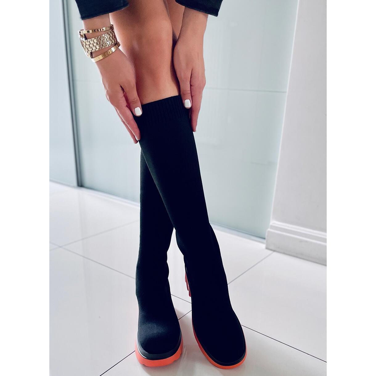 Nous vous présentons des bottes chaussettes avec une tige Duff Orange du célèbre fabricant PA1, qui séduisent par leur design moderne et élégant. Ces bottes noires pour femmes aux accents orange sont le choix parfait pour les femmes qui apprécient la mode au quotidien.