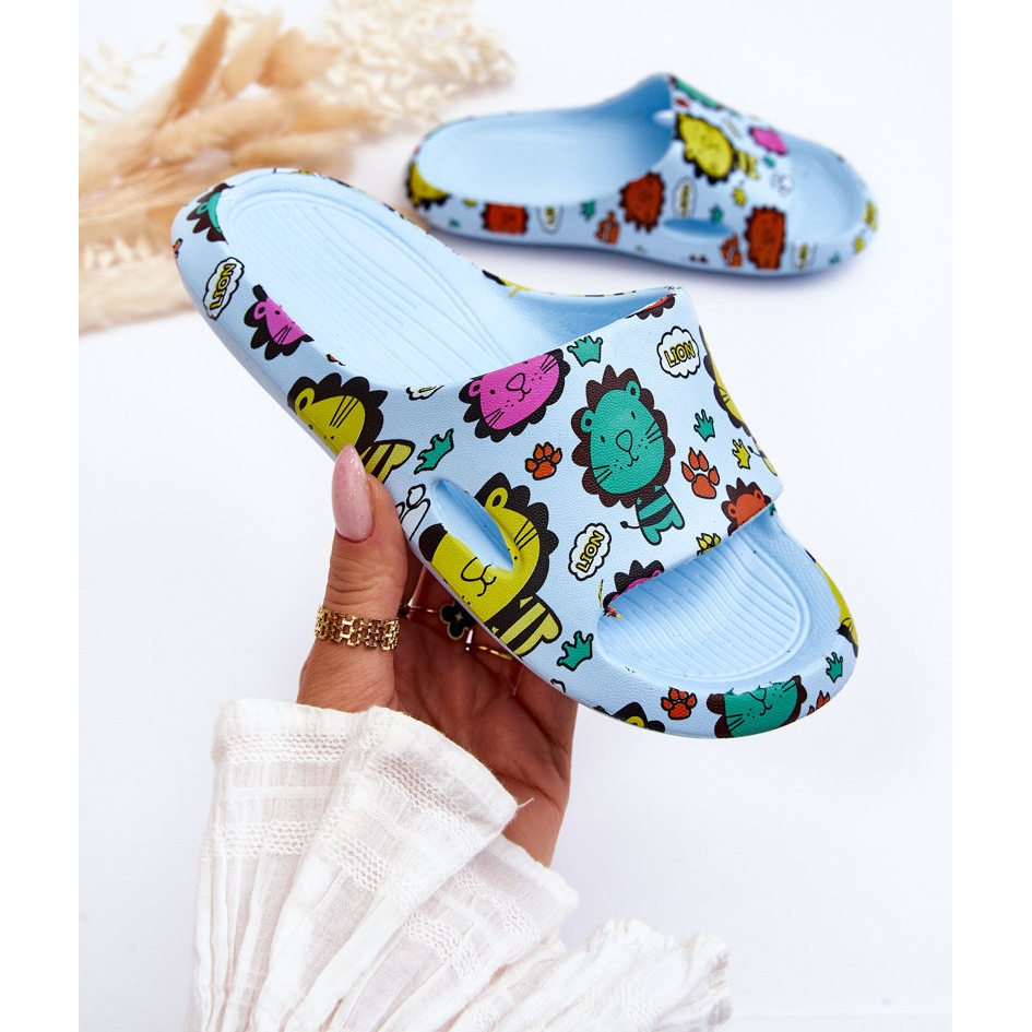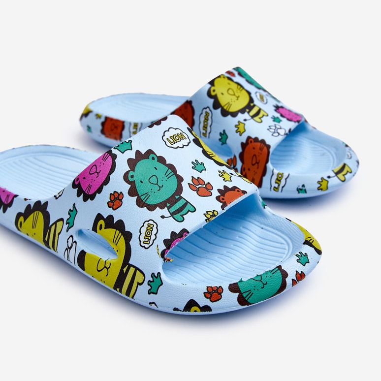 **Pantoufles légères en mousse pour enfants WJ1 Motif Lion Bleu Esther - Parfaites pour l'été !**