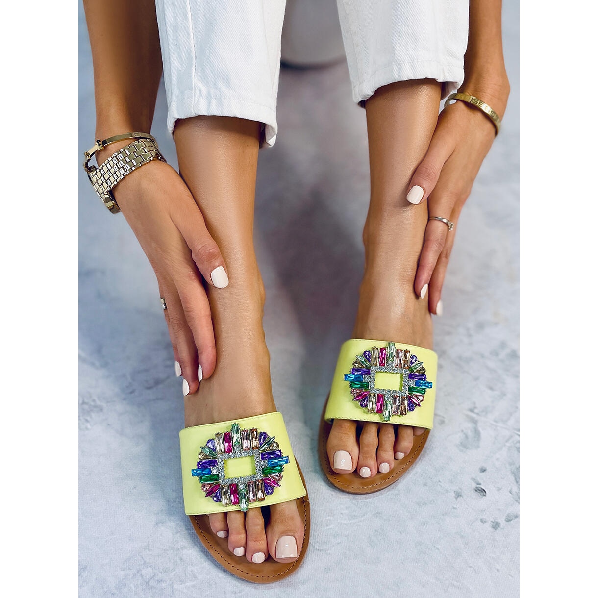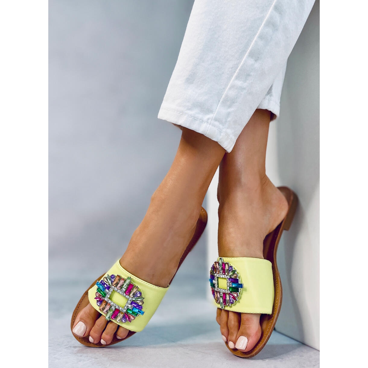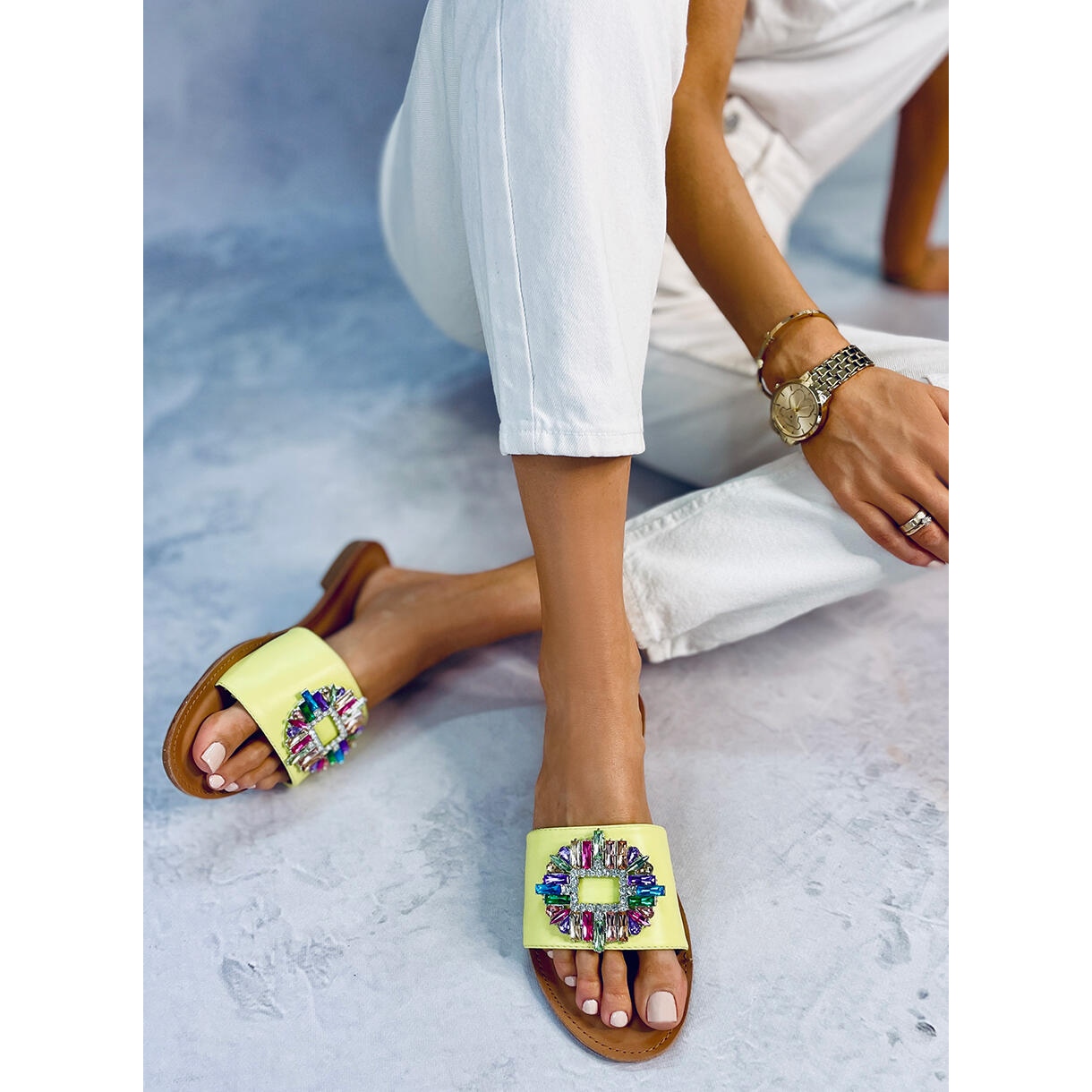 Une large ceinture ornée de pierres colorées et brillantes attire l'attention et ajoute un peu de brillance à n'importe quel style. Créez une impression inoubliable lors de promenades estivales ou de détente au bord de l’eau. Fabriquées en cuir écologique de haute qualité, les tongs sont non seulement superbes, mais sont également respectueuses de l'environnement.