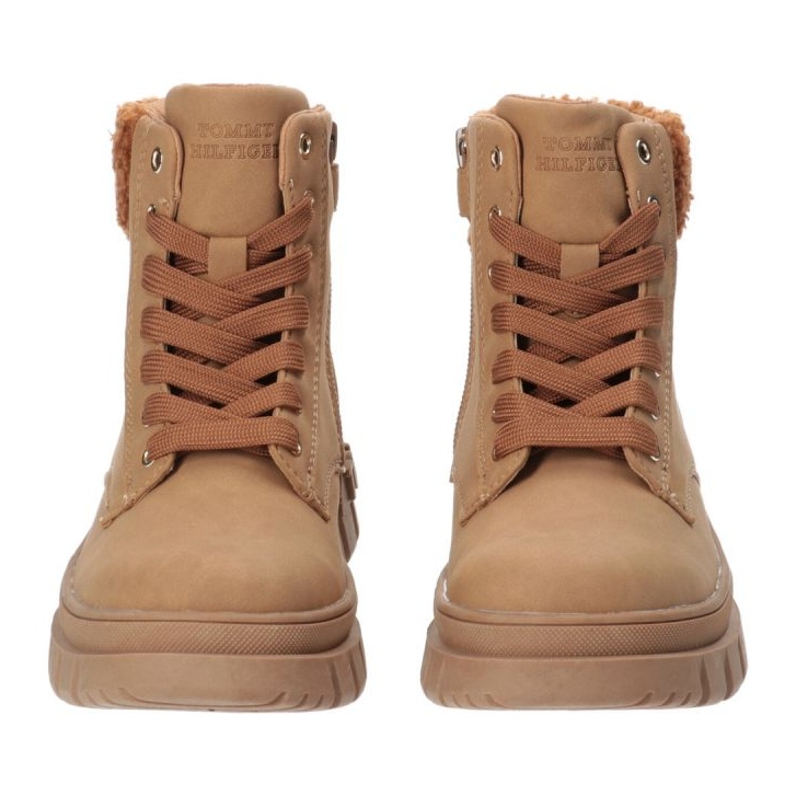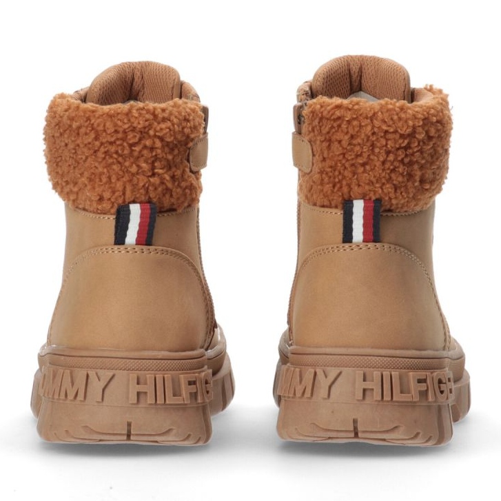 Tommy Hilfiger Lace-Up Botie Cognac dans T3A5-33053-1628582-582-Women's Cognac Boots, combinant le style urbain avec des performances pratiques et saisonnières.