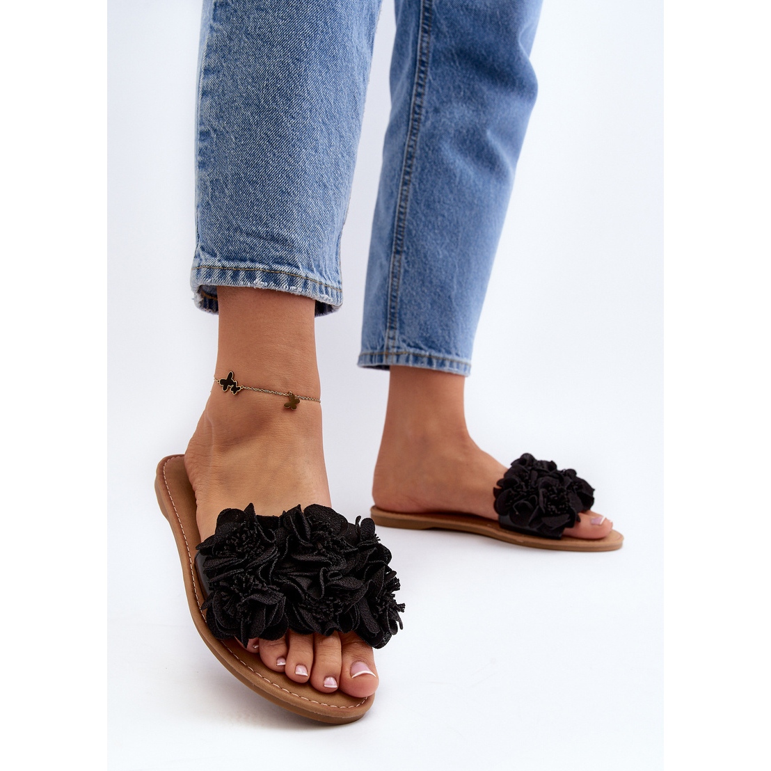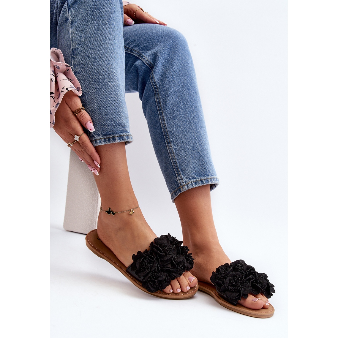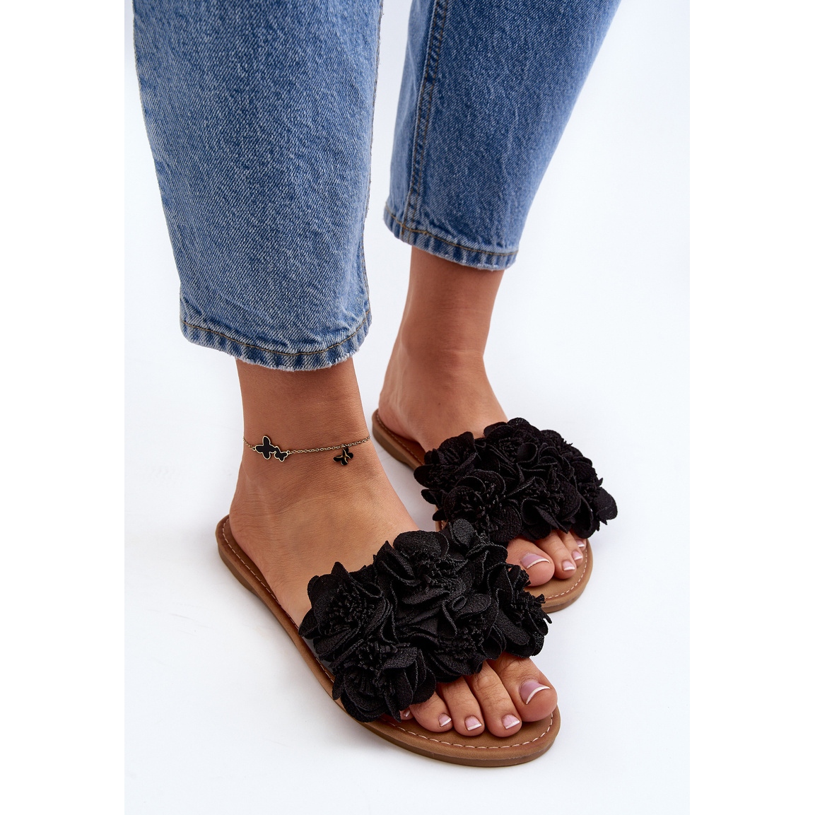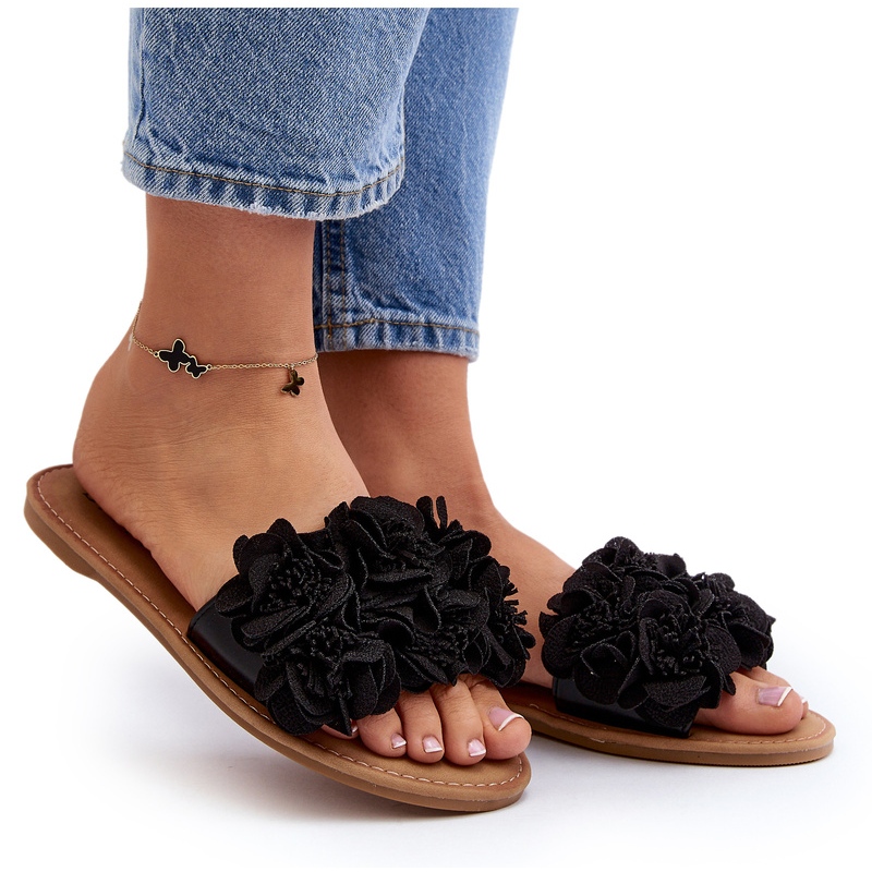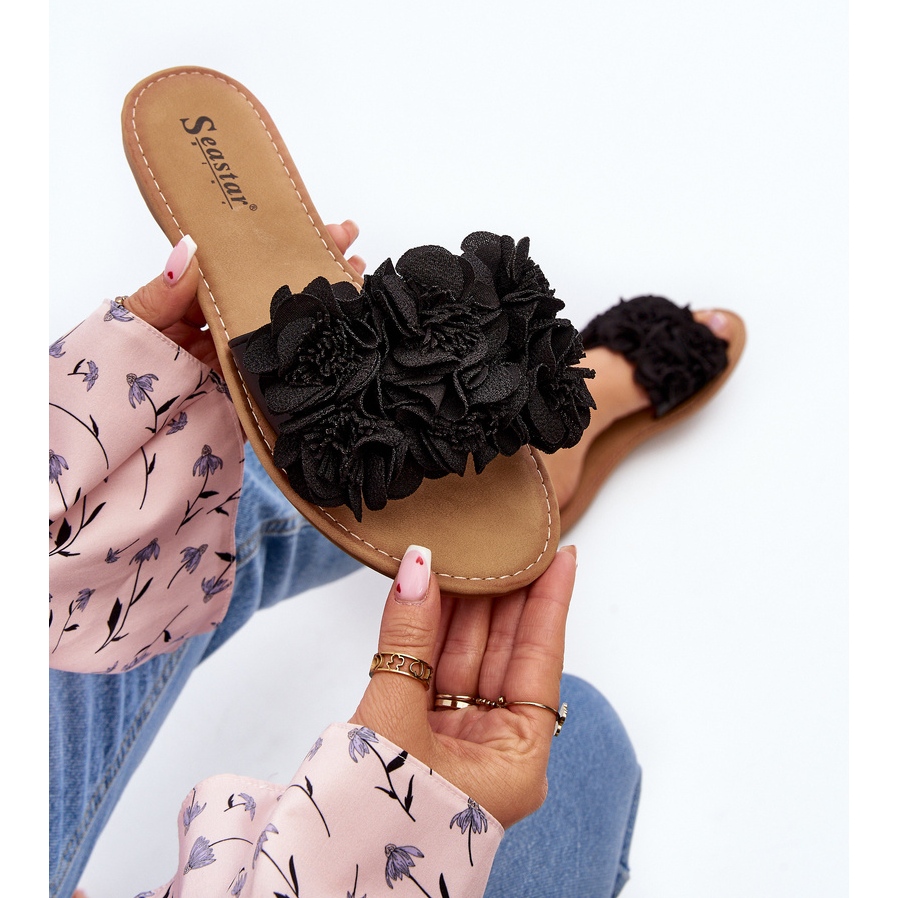 Détails: Tongs à fleurs pour femmes noires Eelfan le noir
