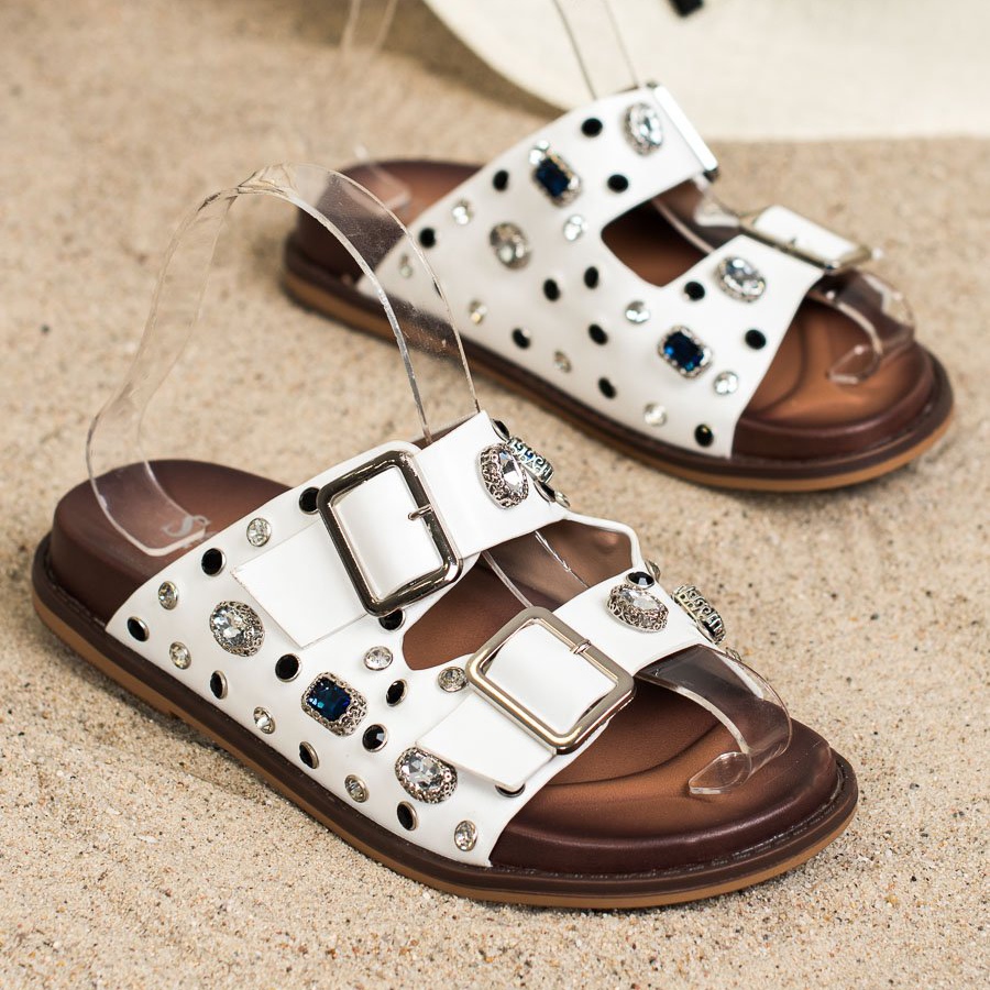 Qu'est-ce qui distingue ces tongs des autres ? Il s'agit sans aucun doute d'un détail sous forme de cristaux qui ajoutent un caractère unique aux chaussures. Les strass brillent et attirent l'attention, ce qui fait de ces chaussures plus que de simples tongs : c'est une véritable déclaration de conscience de la mode. La plateforme de 3 cm de hauteur ajoute un peu d'élégance, tout en étant suffisamment basse pour offrir un confort de marche.