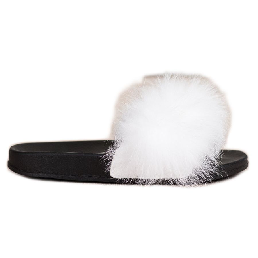 Bona Tongs à la mode avec fourrure blanc